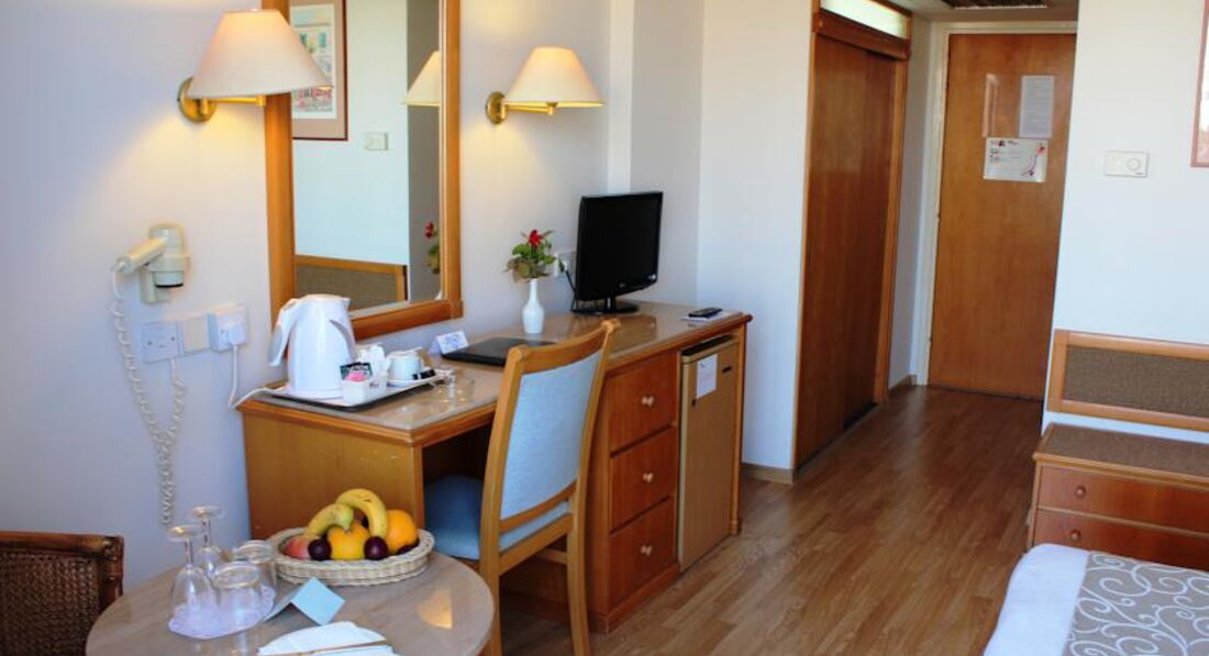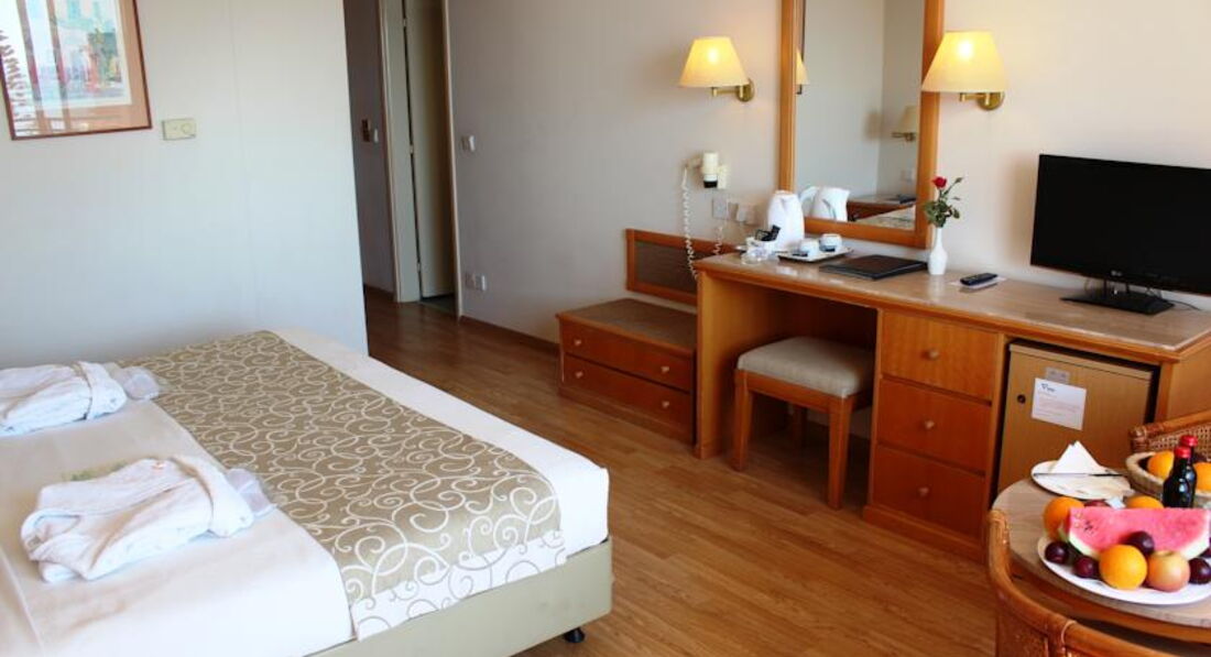 Здравствуйте! Отдыхали в этом отеле в июне 2016. Дорога была тяжелая, долгая задержка рейса и утомительная дорога из аэропорта до отеля. По приезду нас сразу проводили в ресторан, мгновенно накормили полноценным обедом, хотя обеденное время уже закончилось, после разместили в номер. Все устроило с первого раза, замена не потребовалась. В номере все чисто, аккуратно, без поломок, с видом на море. Никаких грязных полотенец и т.п. не обнаружили. Уборка в номере очень качественная, ну либо нам повезло с горничной, либо помогло то, что мы в первый день оставили сразу 10 евро. Больше ничего не оставляли, но всегда были чистые полотенца, белье и т.д. Территория отеля не большая, но все чисто и ухоженно. Довольно хороший бассейн. Мы отдыхали по системе AL. Вместо привычных браслетов, выдают карточки с вашим фото из паспорта. Питание отличное, всего в полном объеме, каждый день несколько сортов мяса, птица, рыбка. Соки, фрукты, мороженое. Очень вкусно!!!! Пляж, конечно, не ахти, но то, что он вообще есть у этого отеля-большой плюс. В районе Пафоса хороших пляжей как таковой нет, и многие туристы из других отелей приходили на пляж этого отеля, что бы искупаться в море. Мы отходили в сторону, минут 5 пешком и там купались. Хорошие пляжи-это АйяНапа. Анимация скучная и очень хилинькая, далеко ни турецкая и ни египетская, но мы этим сильно расстроены не были. Авто на прокат не брали, везде передвигались на автобусе. Продают на них мини проездные, получается выгодно. Сам Пафос тихий и спокойный район, больше подойдет для тех, кто едет на спокойный и нешумный отдых. Молодежи тут будет скучно. Минусов не увидела, пляж за минус не считаю, так как, повторюсь, в районе Пафоса пляжей практически нет. Отель рекомендую!