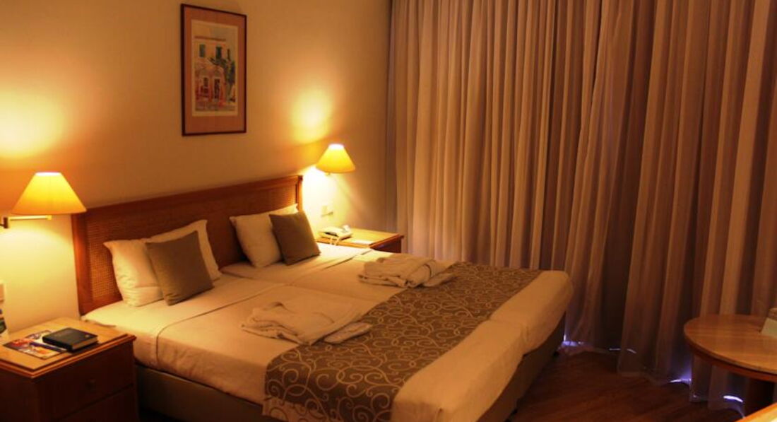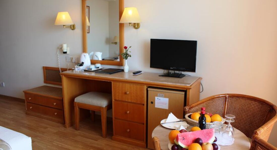 Отдыхали семьей с 09 по 15 июля 2016 года. В принципе нас в отеле всё устроило: приличный номер, отличное питание, ухоженная территория, приветливый персонал, анимация. С пляжем, конечно, не очень повезло, но в море зайти можно. Начитались отзывов про пляж Корал бэй и решили туда съездить, лучше бы мы этого не делали, так как чуть не убились под огромной волной, я туда больше ни ногой. Брали машину напрокат в самом отеле, стоимость вышла 38 евро в сутки + страховка 13 евро + бензин 25 евро. Самый существенный минус в отеле - дорогой и ужасный WI-FI, отдали 15 евро за три дня и в интернет смогли выйти только один раз, устав от бесполезных похождений на ресепшн, плюнули и забыли. Про заселение в отель - мы приехали в отель где то около 7 утра, заселение только в 14.00, но нас без проблем накормили завтраком, выдали полотенца, показали где можно принять душ, умыться, переодеться (что мы собственно говоря и сделали) и спокойно пошли на пляж. В целом, отель оставил очень приятное впечатление.
