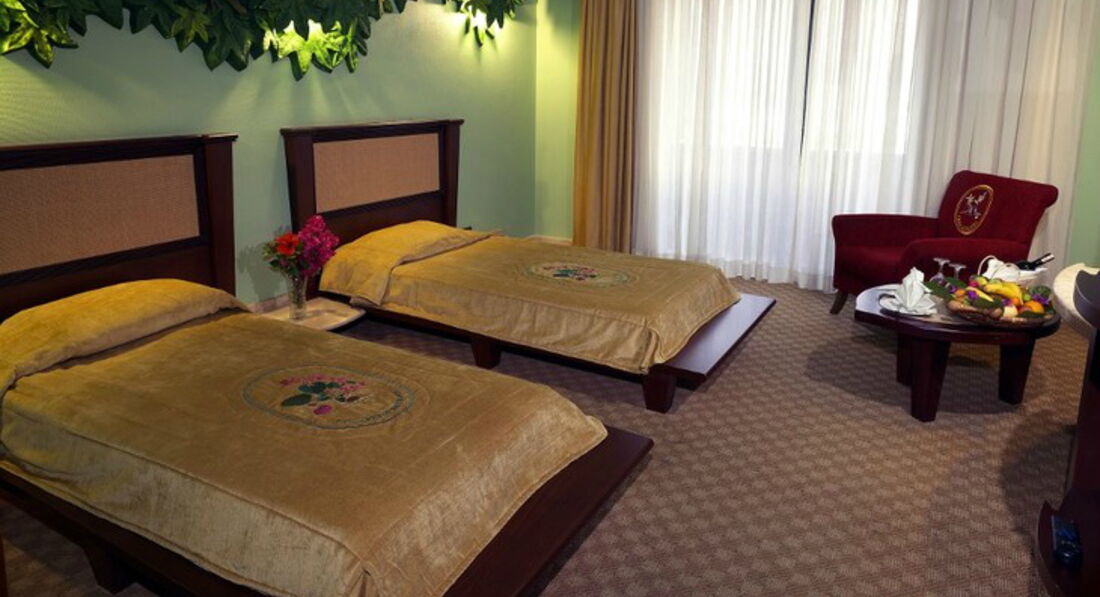 • 1 Suite (макс. 4 чол., 45 м2, вітальня, спальня, ванна кімната, балкон, ТБ, халати та капці).