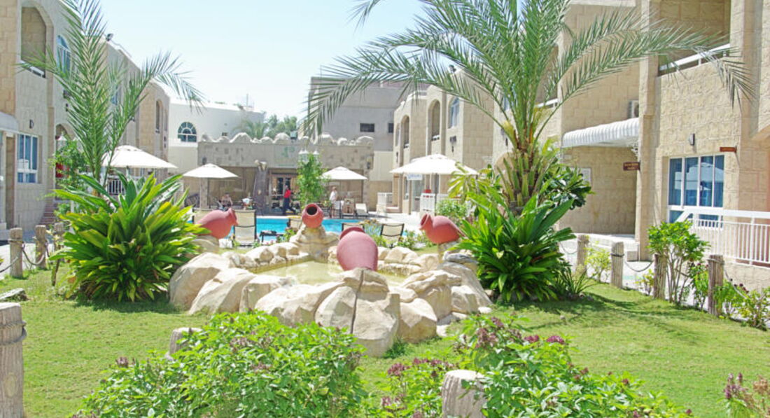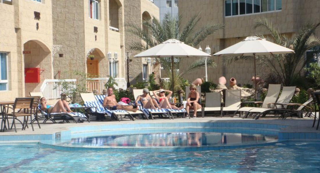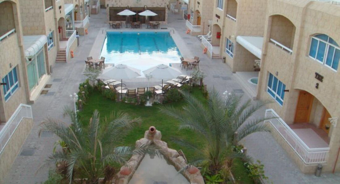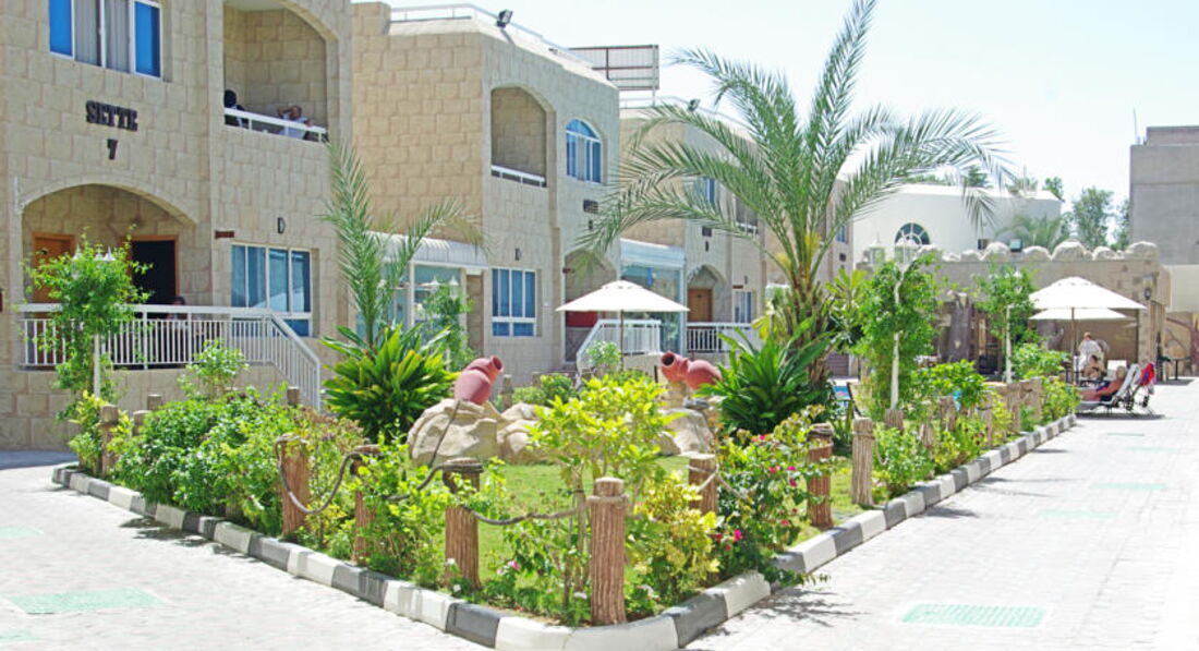 Отдыхали в этом отеле с 11 по 21 марта 2014 года. Начало отдыха было значительно подпорчено тем, что нам с подругой дали номер с двухместной кроватью, хотя при бронировании уточнялось, что кровати должно быть две. Ну, разумеется, на рецепции клятвенно обещали, что завтра освободится номер с двумя кроватями и нас туда переселят. Ну, мы поверили и стали ждать того чудесного момента. Забегая вперед, скажу, что другой номер нам так и не предоставили,даже не заикались об этом, хотя многим другим приезжающим давали даже на выбор несколько вариантов номеров.Да и пообщавшись с другими постояльцами, решили, что может быть и еще хуже номер, у нас хотя бы плесени в ванной не было. Про сам номер. Мы жили в 101 номере, это прямо напротив входа на рецепцию со всеми вытекающими прелестями в виде постоянного шума от приезжающих-отъезжающих в любое время суток и яркого фонаря над входом. Спали с открытым окном, ибо под кондёром спать нам как-то не хотелось всю ночь, и фонарь светил адски. Грохот тележки уборщика территории начинался часов в 5 утра. Запах пыли и затхлости в номере был, но как-то мы с ним быстро свыклись, не сильно раздражал. Номер к нашему приезду готов не был, постель вроде бы была перестелена, а ванна была грязной и с длинным брюнетистым волосом на дне. Пол был грязный по всему номеру. За все время пребывания там постель нам меняли раза 4, нормально, чай-кофе-сахар тоже постоянно докладывали. По поводу уборки. Вежливый мальчик утром спрашивал, можно ли убраться, и начинал уборку с подметания номера сухой типа щеткой. Пылищу поднимал страшную! Протирал мебель, потом елозил тряпкой по полу, мыл полы. Не сильно чисто, но сносно. Но подметать вначале - это зря, там пыли вагон, и всю ее он поднимал вверх, потом она благополучно оседала на всем. Мебель в номере старовата, но вполне добротная. Маленький холодильник в тумбе под телевизором. Бесплатный сейф в шкафу. Телевизор из русских каналов показывает РБК и РуТВ песенный. Так как в первый день питание нам не полагалось, мы подошли на рецепцию с просьбой сказать, где бы нам поесть, на что нам предложили пообедать в местной столовой за 14 долларов, что мы и сделали, несмотря на то, что цена была дороговата, но есть хотелось оченно. Питание очень приличное. Мы брали только завтраки, о чем я жалею, ибо все хвалили обеды-ужины. Завтраки достойные, но к десятому дню однообразие надоело. Территория замечательная и очень хорошо, что в отеле есть свой дворик, другие отели, ближе к центру Шарджи, обычные городские отели-дома высотные с выходом сразу на дорогу. А мы вечерами чудненько сидели или в беседке, или у бассейна, хотя вечерами мы были в отеле раза 2, остальное время гуляли. Дорога до моря-залива минут 7-10, нормальная, НО перейти две дороги с бешеным движением-обматеришься. Залив чудный, вода теплая была, ракушки каждое утро намывало новые и красивые до обалдения. Понабрали с собой по килограмму. Глазеющие на нас на пляже местные особо не раздражали.