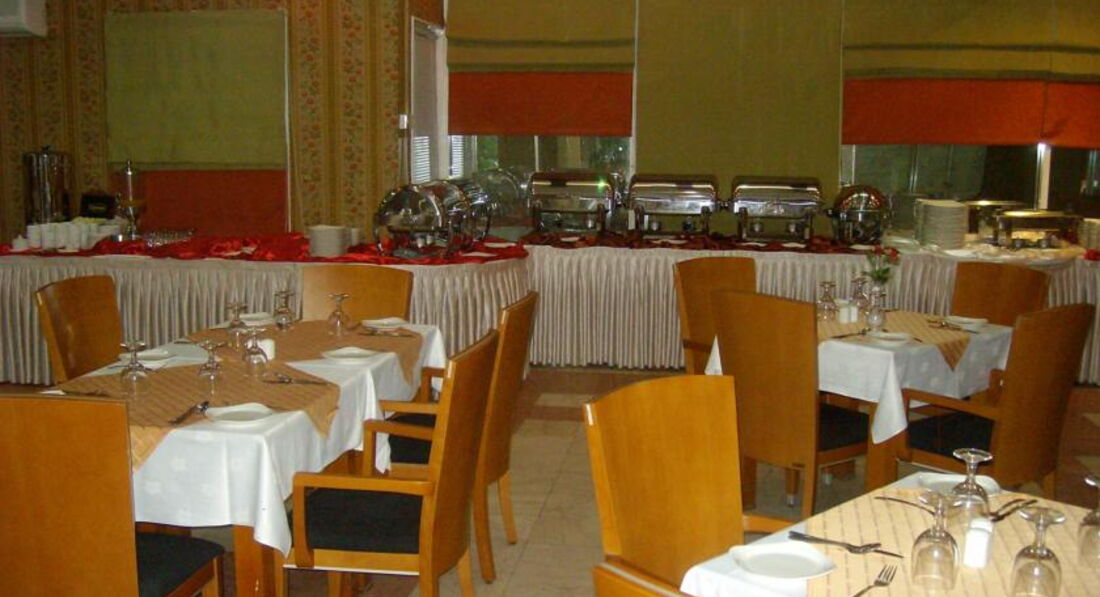 Кто-то ранее уже писал про огромный выбор блюд в ресторане. Вы меня конечно простите, но я не могу не задать этот вопрос: Вы правда так считаете? Нет, я конечно же помню про уровень отеля и мы были готовы к этому, но зачем людей в заблуждение то вводить? Стандартный завтрак (изодня в день): огурцы, помидоры, салат, каша, пирожки какие-то маленькие невкусные, кашица из фасоли (которая стоит всегда нетронутой), хлеб, круасаны, чай, кофе (растворимый), юпи-сок и арбуз, иногда блинчики (2 или 3 раза за 2 недели были). В общем то все... Ах, да, чуть не забыла, повар делает глазунью или омлет (за что ему огромное спасибо). Каждое утро пахло горелыми тостами, стояла дымка (тостер такой старый, что автоматом не отключается, нужно караулить, не все видимо об этом знают), а в таком маленьком помещении это очень неприятно. Обеды-ужины абсолютно одинаковые (что было на обед, то же самое на ужин), ассортимент также изодня в день один и тот же: огурцы-помидоры, 2 вида салата (один типа греческого, другой типа оливье), 1 вид супа, 2-3 вида гарнира и 2 вида мяса (один из них одни кости) и рыба. Из фруктов - арбуз, из напитков -чай и растворимый кофе. Воду в пластике ставят на стол только на ужин из расчета 0,5 л. на человека (правда нам стабильно на пятерых ставили 1,5 литровую бутылку, экономили наверное). ВСЕ! И так каждый день. Согласна, что с голоду умереть сложно, и все довольно съедобно, но зачем люди пишут о потрясающем выборе блюд и сравнивают этот отель с 4 звездами? Как то, ни то за завтраком, ни то за обедом я попросила бутылочку маленькую воды для ребенка, не дали, сказали "вообще-то это за деньги". Это было в первые дни нашего пребывания, потом мы конечно сходили в супермаркет и купили пак воды сразу. Правда, вся вода, подаваемая на ужин разрешена к выносу в номер)). Еще интересный момент, в столовой на выходе, и в углу, где еда, стоят большие красные таблички на которых на русском языке написано "ВЫНОСИТЬ ЕДУ НЕ РАЗРЕШАЕТСЯ!". Я так понимаю, для любимых русских гостей сделали))). Ну, не все так плохо, официанты были довольно быстры и обходительны.