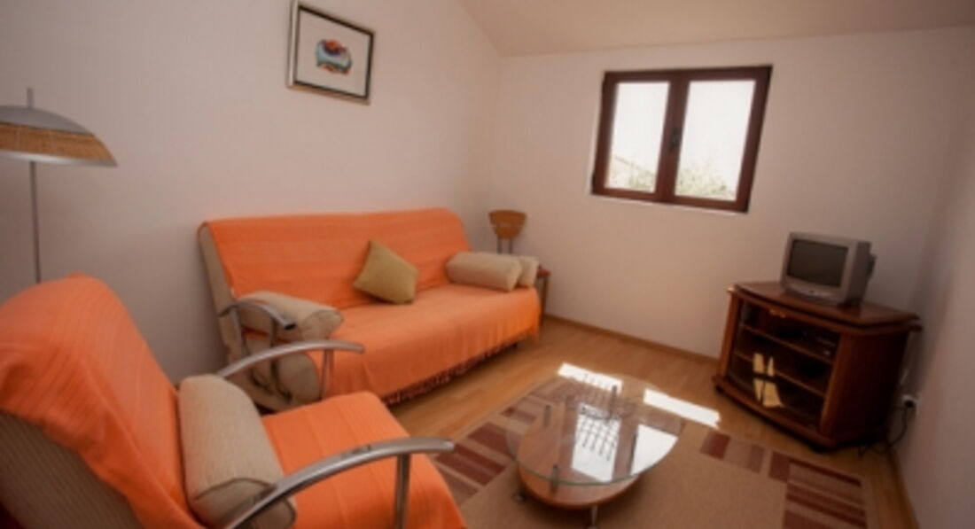 В APP 02+1/SV/1br: вітальня з розкладним диваном, повністю обладнана кухня, спальня з французьким ліжком. Супутникове ТБ, Wi Fi інтернет, кондиціонер, фен, санвузол з душовою кабіною, тераса з видом на море.