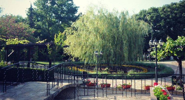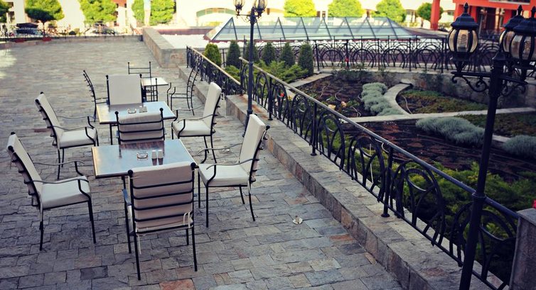 2. ТЕРРИТОРИЯ. Она небольшая, но зеленая и уютная, такой мини-парк. Имеется детская площадка на улице, которая удачно расположена в тени деревьев (даже в самый солнцепек – там тенек). Так же есть бассейны: один на улице, другой в помещении. Есть на территории и очень замечательное кафе «Избата». Ну а так же винный погребок (магазин) с дегустационным залом, но цены там в 3 раза дороже чем в обычных магазинах. В самом отеле есть бильярд (5 левов=2,55евро), настольный тенис (5 левов=2,55евро), сауна (7 лев/чел=3,5евро). Имеется и медицинский центр приличный, только после ремонта, его в середине июня должны открыть.