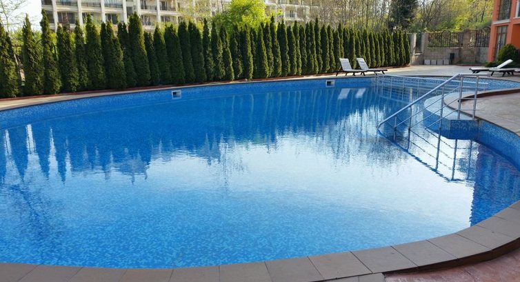 На территории есть открытый бассейн, фитнес-центр, СПА, и кабинеты, где проводят процедуры.