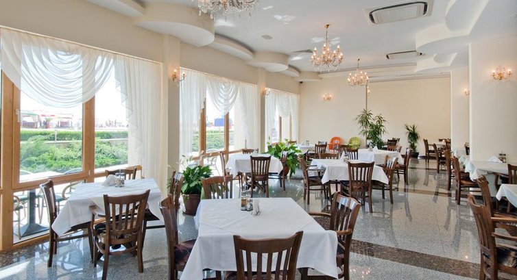 И самое ужасное – это когда мы попали на ужин. Ресторан там один. Нигде, ни в одной самой запущенной трешке турции/египта/тайланда и т.п. – вас не будут кормить такой дрянью. Поверьте, есть чем сравнивать, объездили уже полмира, были в самых разных отелях. Здесь же дешевая столовская еда, слава Богу свежая, но на этом ее плюсы заканчиваются. Всего два стола на шведский стол, к ним большая очередь, сесть потом тоже некуда, ждешь очередь на столик (может так только в сезон). Мясо: котлеты недожаренные и переперченные, куриные крылья порубленные топором, с острыми торчащими костями, даже макароны испортили, вечно переваренные, куриные наггетсы – пустые внутри с запахом курицы и серого цвета стенками, пару раз видели волосы, запеченные в яйце. Брр… Рыба в кляре - просто безвкусные куски в холодном прелом тесте. Помидоры не спелые, все гарниры в каком-то жутком белом соусе. Есть можно только болгарскую брынзу (действительно вкусно) и фрукты. Ассортимент для 4-ки они может и выдерживают, но качество продуктов отвратительное. Может просто повара не достаточно квалифицированы. Даже наши всеядные мужики плевались. В общем, если ехать в отель, то не брать их питание. Завтраки были съедобными, только вот глазунью вечно портили, всего пару раз желтки были не в крутую, а как следует. После обеда они выкладывают бутерброды с бумажным хлебом и сыром/колбасой. Вот вам all-inclusive. В полдник еда же есть, формальность соблюли. В общем, в любом кафе за пределами отеля кормят ОЧЕНЬ вкусно, огромные порции, а главное очень дешево. Первую неделю мы еще выискивали съедобные вещи в отеле, потом плюнули, ели в основном за пределами.