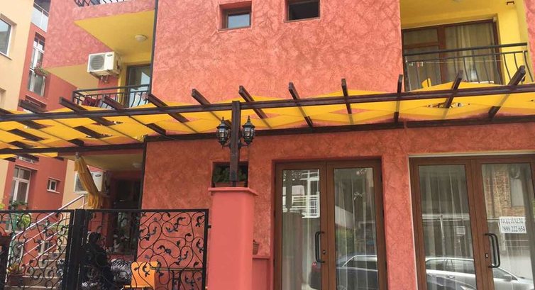 Хорошая хозяйка Бонка и две её хаски Аарон и Макс.Разместили нас ( с подругой)на последнем 4 этаже, номер 42, подниматься с чемоданом мне было тяжело, номер жаркий, нагретый, кондиционер давал тепло, спали с открытым балконом, но чайки в пять утра начинали кричать, за неделю хронический недосып. так как номер был душный сон был коротким, досыпала на пляже в тени и под зонтиком.В комнате полотенца и купальники высыхали быстрее, чем на балконе. На балконе есть веревка и прищепки. Солнце на нашей стороне с 11 утра и до 19.00 вечера. Спали на одной большой кровати. Номера рассчитаны только для семейных пар и с детьми.Душ работал хорошо, туалет спускался плохо, был тазик наливали и сливали. На пляже Лежак и зонтик от кафешки стоит 10 лев(5€)+ чашечка кофе или любой напиток, можно пользоваться туалетом. На пляже нет туалета и душа. Чёрное море солено- мочевое, думаю писают в море. Мы уходили на пляж в 9 утра и приходили в седьмом часу. В комнате было пекло. Так как наш рейс задержали до вечера, номер нам пришлось освободить до 12.00, на этот случай в отели не предусмотрен ни туалет, ни душ, разрешили оставить вещи. Хозяйка не очень хотела, чтобы мы сидели у отеля, нам пришлось идти в кафе и 2,5 часа сидеть и ждать время, когда нас заберут до 14.30. Самое пекло. Ну вот как- то так. Отель без излишеств и претензий. На ваш вкус и выбор.