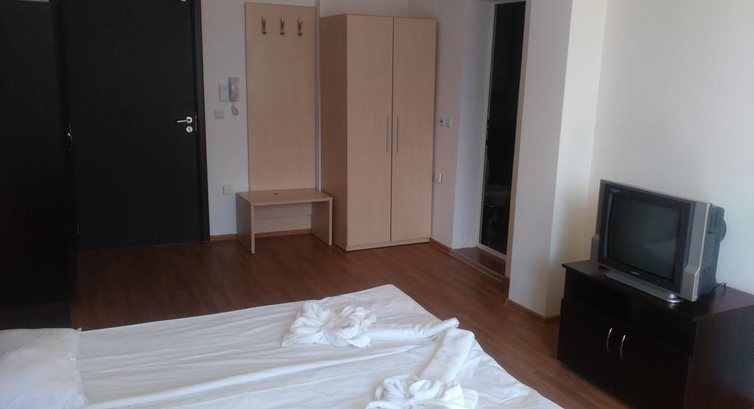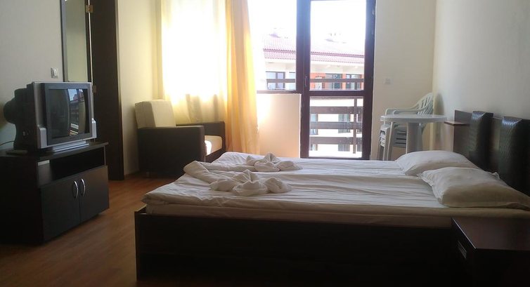 Отдыхали в июле 2016 с ребенком (10лет) в Несебре, и если бы не сам город- отдых бы считался испорченным.... В номер нас заселили раньше положенного времени(спасибо за это). Разочаровалась с первого взгляда- кухня и спальня не разделены ничем. Кухонный уголок включает электроплиту, мойку, эл.чайник, одна кастрюля и одна сковорода(сомнительной чистоты),по 2 вилки-ложки-кружки-чашки-стакана, холодильник. Из кухни все(кстати,кроме чайника кухней больше не пользовались). Нам достался номер с видом на соседние отели(четвертый этаж), лифт работал. Wi-Fi в отеле нет. Сам отель очень грязный, за две недели пребывания в номере ни разу не убирали, постельное белье и полотенца не меняли (мусор выносили сначала ежедневно, затем через день). Слив в душе забит, в ванной горела одна из трех лампочек. Плюсы--близость к морю, на выходе обменник, рядом магазинчик, куча кафешек. С таким же успехом можно было брать номер без кухни, хоть сэкономили бы...По-русски разговаривает только одна из уборщиц(благо английский знаю).
