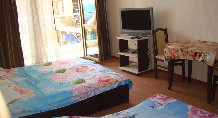 С самого начала получили номер "немного" не такой, как хотели. Бронировали с видом на бассейн (чтобы не на улицу. так спокойнее, не будят по ночам байкеры и прочие), получили вид на улицу, причем прямо под балконом находился круглосуточный магазин. Шум транспорта и ночные посиделки болгарских продавцов в наши курортные планы не входили. Номер разваливался, не было в чем погреть воду, про душ уже говорили много- много раз. Убирали ужасно ( даже при том, что уборщицам всегда оставляли деньги).Первые дня три более- менее, затем ломились к нами в 10 утра. Вполне могли не убрать, даже два дня подряд. После похода на ресепшн к апатичной женщине по имени Джульетта, ничего не изменилось. Сказала, что уборщиц уже нету сегодня и она ничего сделать не может. Приходите, когда будет уборка у вас. А как приходить, если уборщиц вообще нет??? Также в номере был сломанный выключатель электричества, отчего бойлер мог выключиться, когда ему вздумается. Соответственно утром или по приходу с моря горячий душ был не всегда. И это еще не все минусы. Отель с трудом тянет даже на 2 звезды...