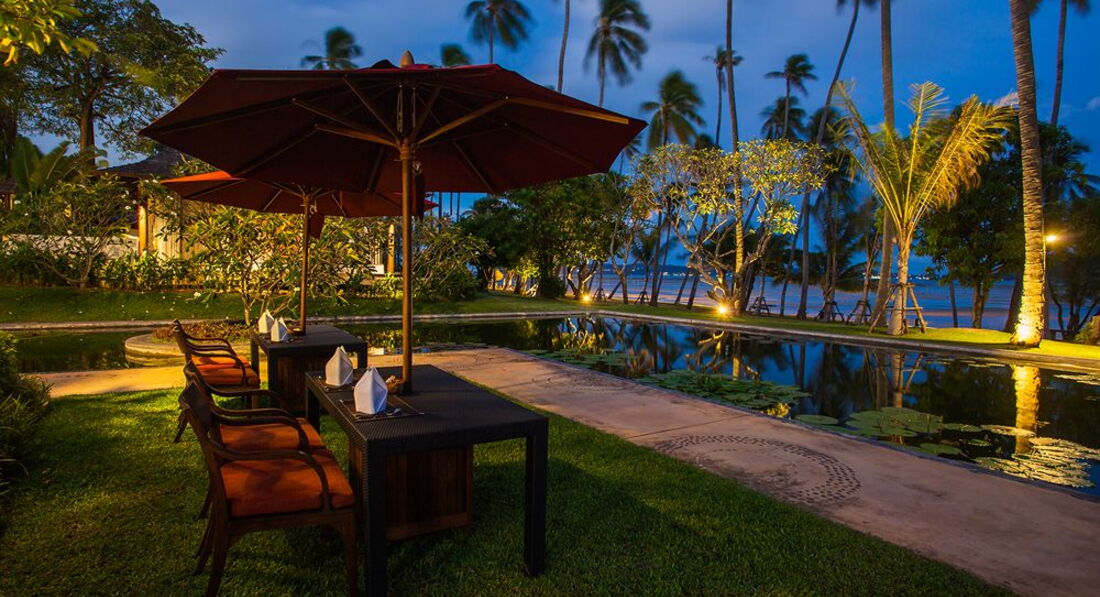Ресторанов на территории 2: один располагается у общего бассейна, слева от него. Окружен живой изгородью, не приходится во время еды лицезреть чужие обнаженные тела))) чудесный вид на море и острова. В нем представлены блюда европейской, тайской, китайской кухонь. Большие порции, все вкусно) Некоторые тайские блюда не вполне понятны и привычны, но попробовать можно, интересно все же:) хороший уровень обслуживания, официанты сразу тебя узнают, путаются что-то шутить)) кстати, тайский английский - часто просто ужас))))) иногда сложно понять, что они так улыбчиво говорят)))) Второй ресторан у пруда с кувшинками предлагает блюда тайской кухни, чудный хозяин ресторана и официантки, просили их рекомендовать нам какие-нибудь тайские блюда, мы всем остались довольны)