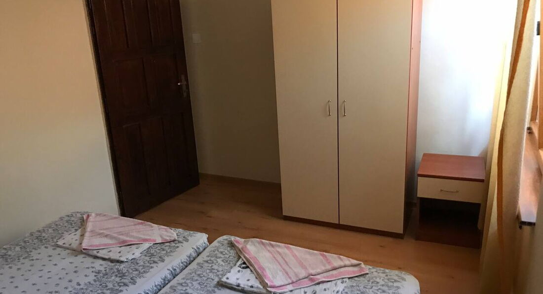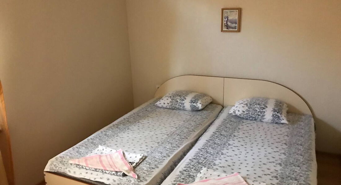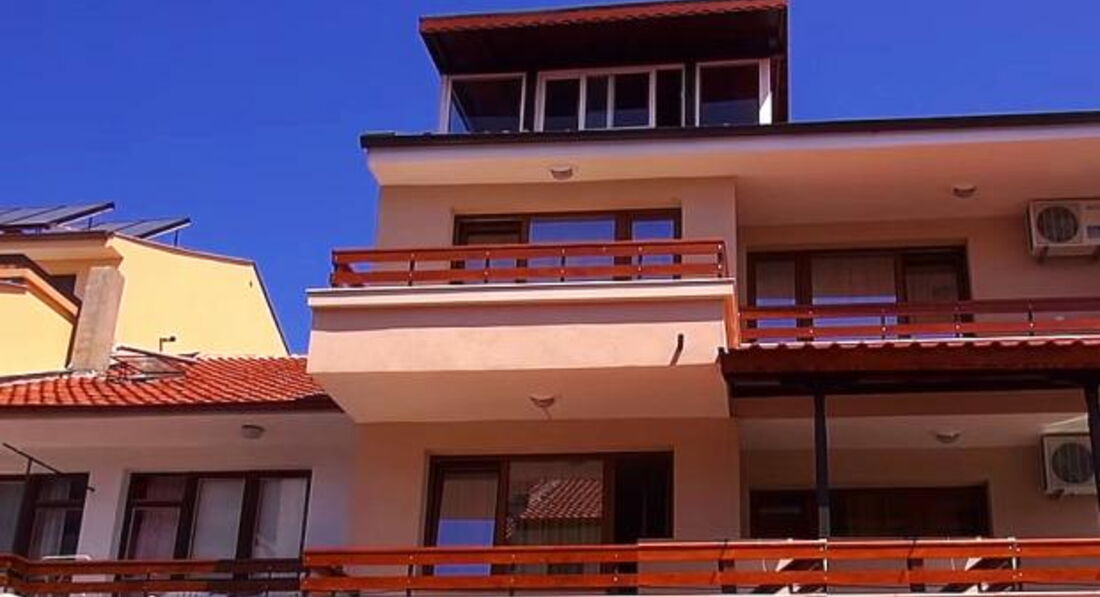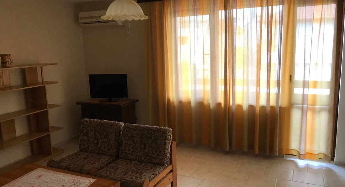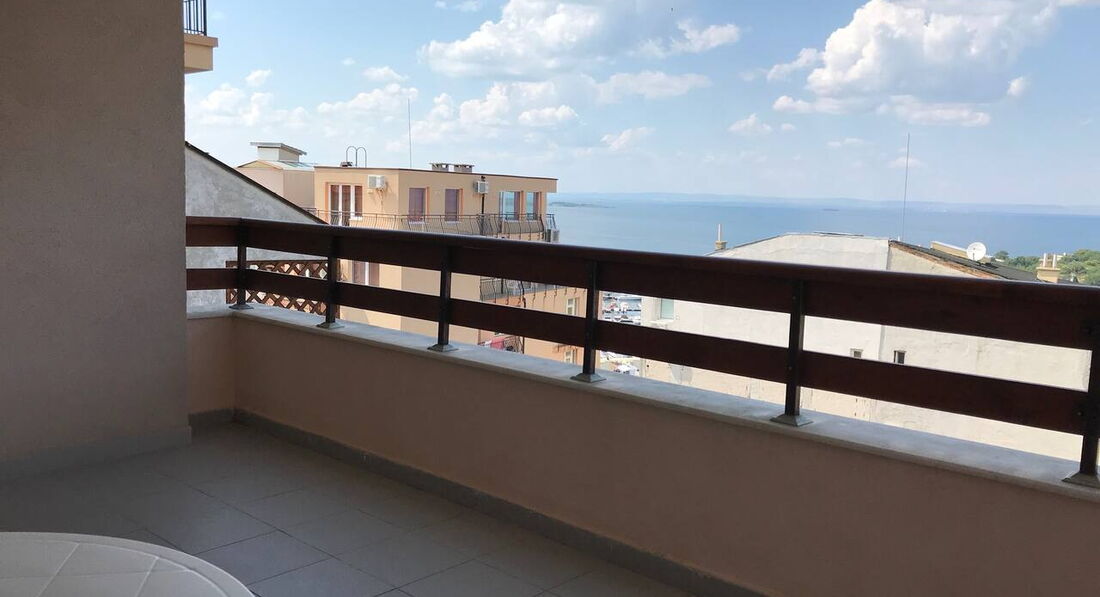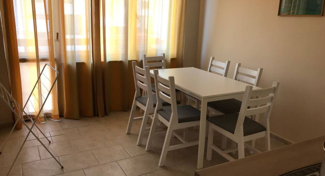 Гостьовий будинок розташований в новій частині міста на пагорбі над старим містом, квартира на третьому поверсі. Три окремі спальні, шість стандартних ліжок (додаткове ліжко може бути додане у вітальню), кухня з холодильником, плита, повністю обладнана столовим сріблом, плитами, кухонним начинням, двома терасами, кондиціонером. Безкоштовний Wi-Fi у фойє. Покоївка весь час у приміщеннях, прибирання щодня, свіжа білизна щотижня. Ресторани та міні-ринки поблизу, 450 м. від пляжу та старого міста.
