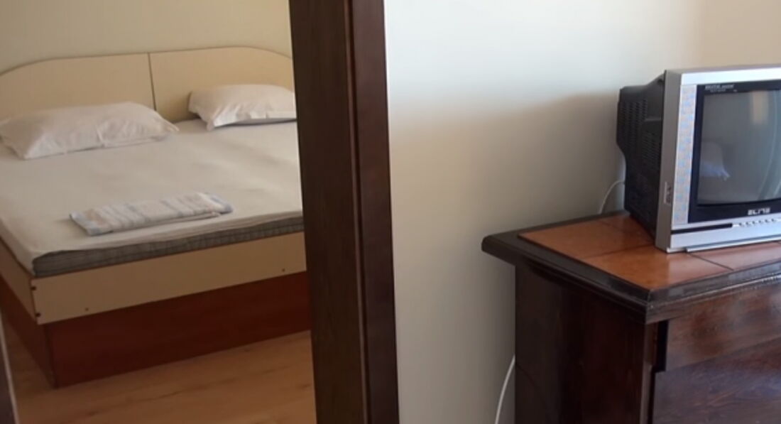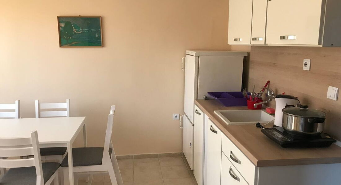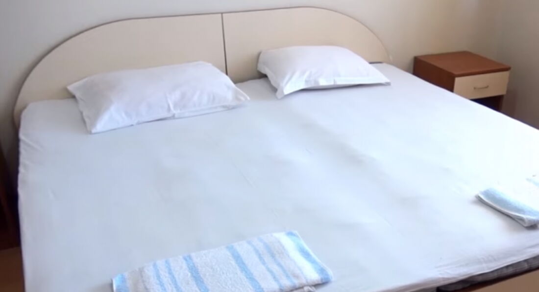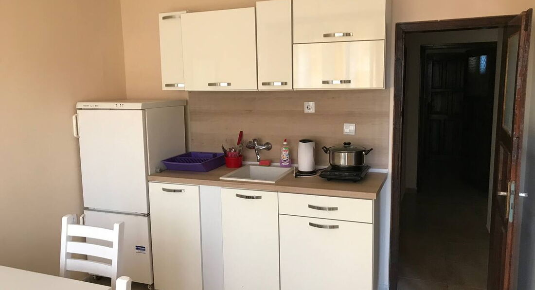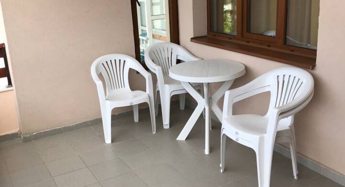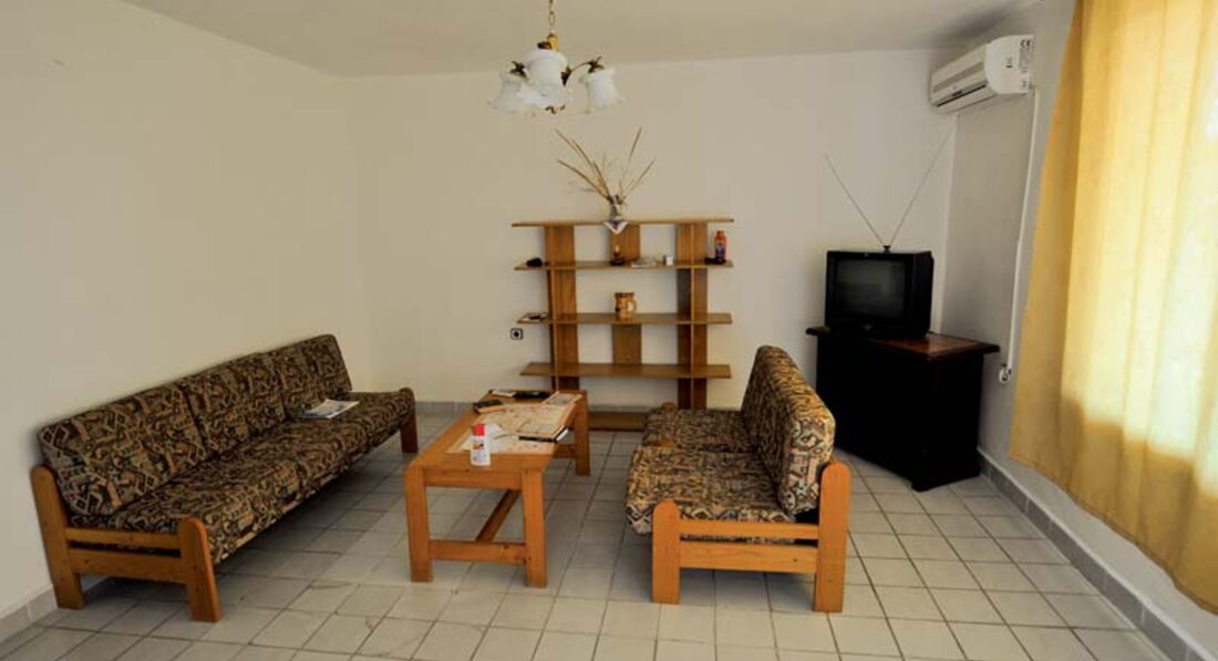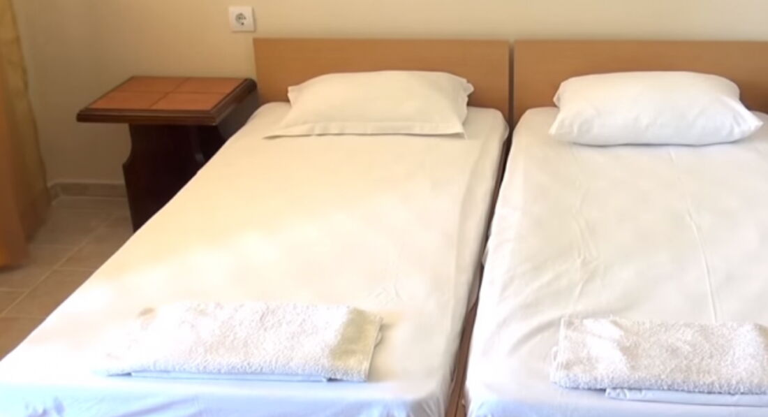 Гостьовий будинок розташований в новій частині міста на пагорбі над старим містом, квартира на третьому поверсі. Три окремі спальні, шість стандартних ліжок (додаткове ліжко може бути додане у вітальню), кухня з холодильником, плита, повністю обладнана столовим сріблом, плитами, кухонним начинням, двома терасами, кондиціонером. Безкоштовний Wi-Fi у фойє. Покоївка весь час у приміщеннях, прибирання щодня, свіжа білизна щотижня. Ресторани та міні-ринки поблизу, 450 м. від пляжу та старого міста.
