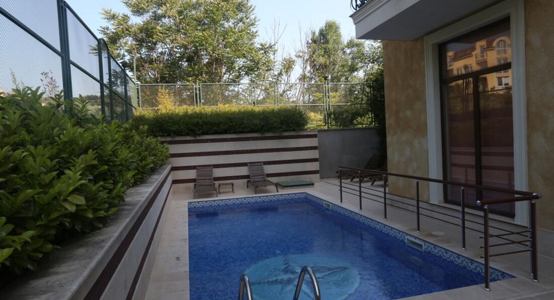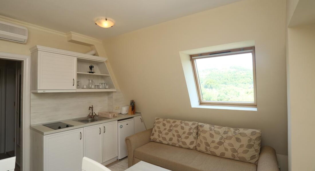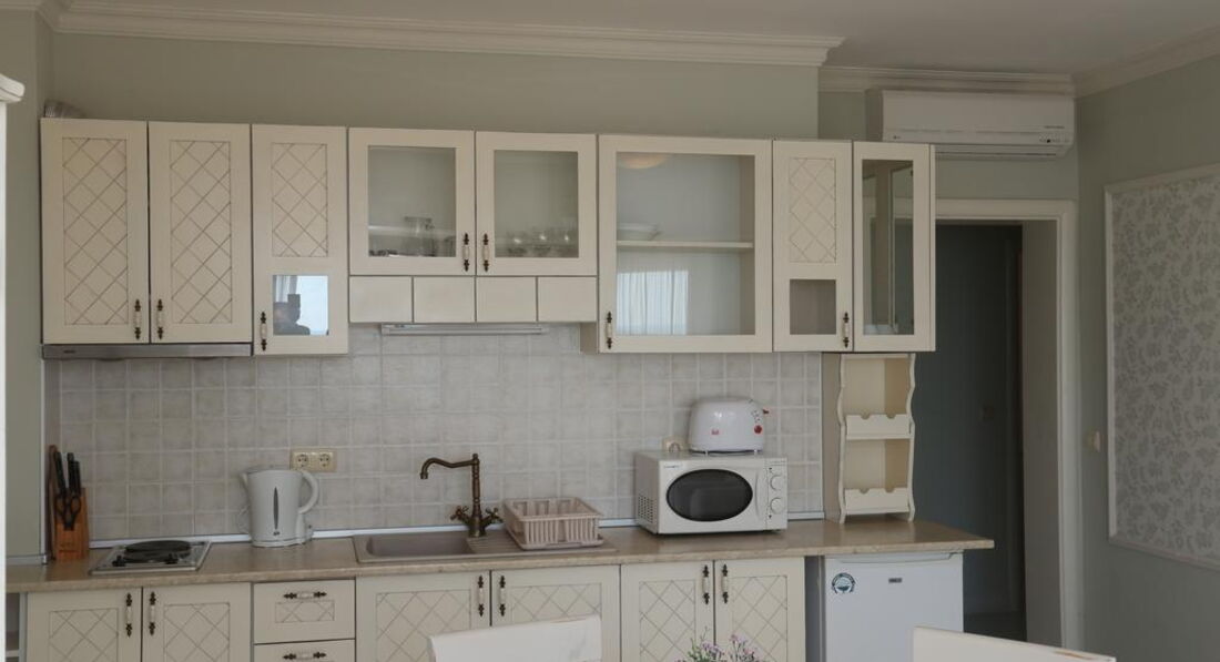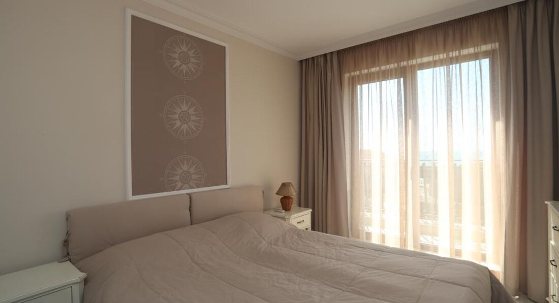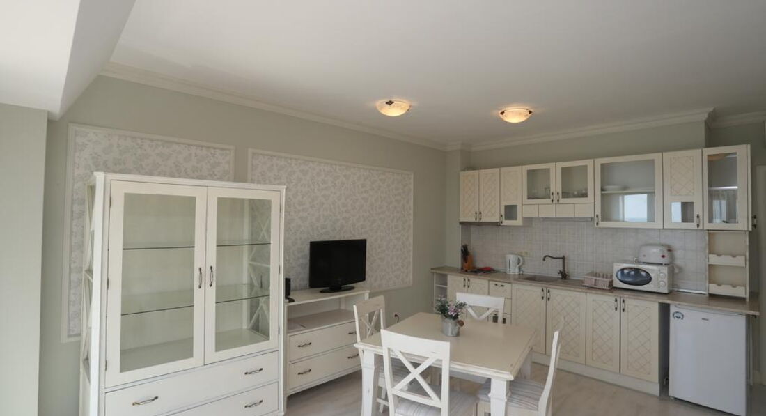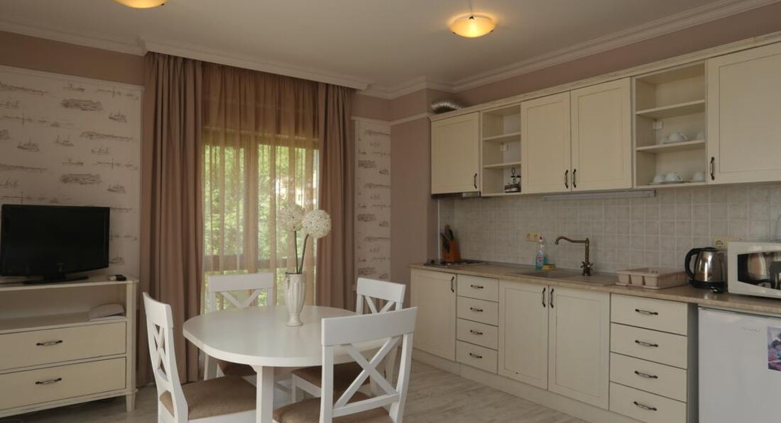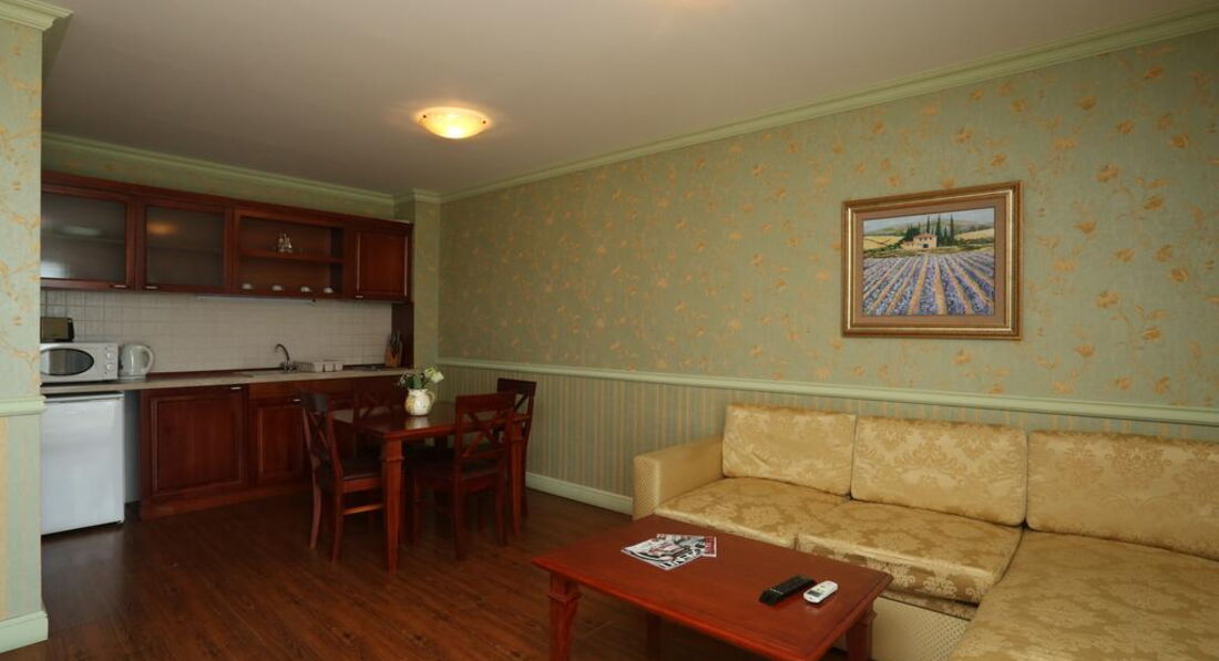 Отличный апартамент для отдыха с маленькими детьми. Есть игровая площадка с горкой и качелями на территории и игровая комната внутри. Мы ездили с детьми 6 месяцев и 1,5 года. Место тихое, после 22-00 тишина, дети прекрасно спят! Открытый бассейн с шезлонгами и барбекю. До моря меньше 50метров реально! Пришлось оценить ПИТАНИЕ, но питания НЕТ. Есть 3 ресторана в радиусе 100 метров, там вкусно и недорого кормят.