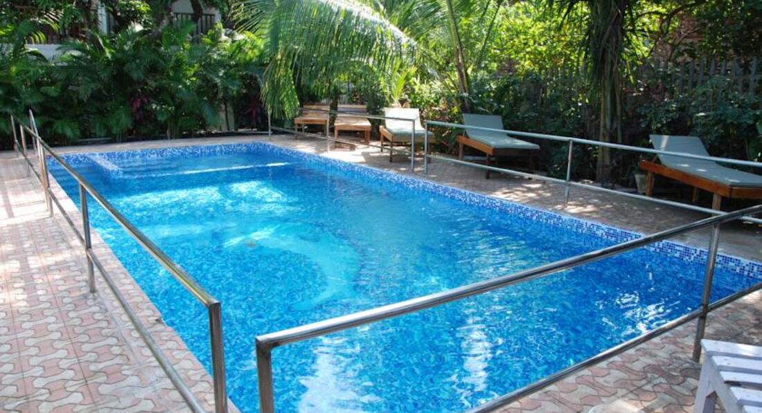 Мы ( я и моя подруга) приехали уже поздно, в 23 вечера, на ресепшене нас встретил разлюбезнейший мужчина, быстренько оформил, предложил номер на первом, но мы отказались, побоялись, что будут лазить через балкон, сказали, что хотели бы на третьем и он радушно предложил нам номер на третьем этаже. Уютно, комфортно, все необходимое имеется, холодильник, тв, шкаф, шикарные две кровати и столик со стульями на болконе. Номер небольшой, но комфортный. Территория отеля также не большая, в сравнении с масштабами отелей Египта, но и не маленькая, кафе, задний двор с бассейном, все чисто и зелено. До пляжа по заднему двору мин 5 max, а по центральной улице мин 15 прогулочным шагом. Пляж Бага/Калангут. Центр тусовок, вечеринок, множество кафешек. Все необходимое рядом , в шаговой доступности.