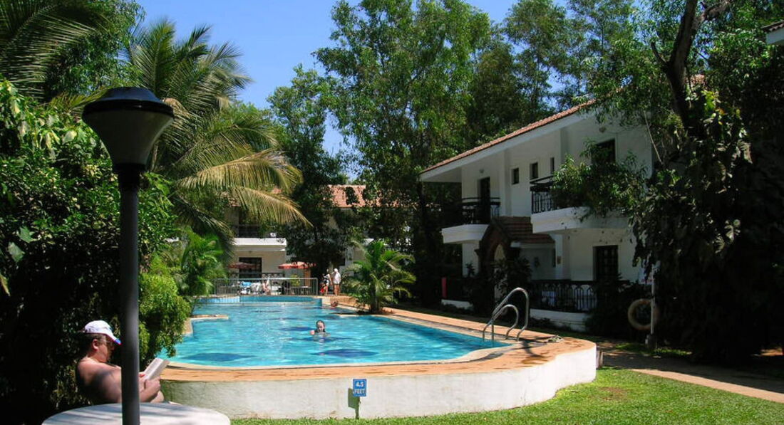 Отдыхали в ноябре, очень понравилось: 1) расположение отеля по отношению к пляжу, имеет свой выход к морю по тенистой аллеи пальм, пляж, чистый , находится между пляжем калангут(очень грязный, много мусора, окурков, кот. бросают сами индусы) и пляжем бага. 2) сам отель очень понравился, его территория очень зеленая, красивая, бассейн- небольшой, работает с 8 утра до 18 вечера, вода в нем чистая, меняют каждый вечер и чистят . Персонал приветливый. 3) уборка номеров хорошая, ниразу не оставляли чаевые, но убирали всегда чисто, полотенца меняли каждый день, единственное надо оставлять обязательно с утра на ресепшен ключи от вашего номера.