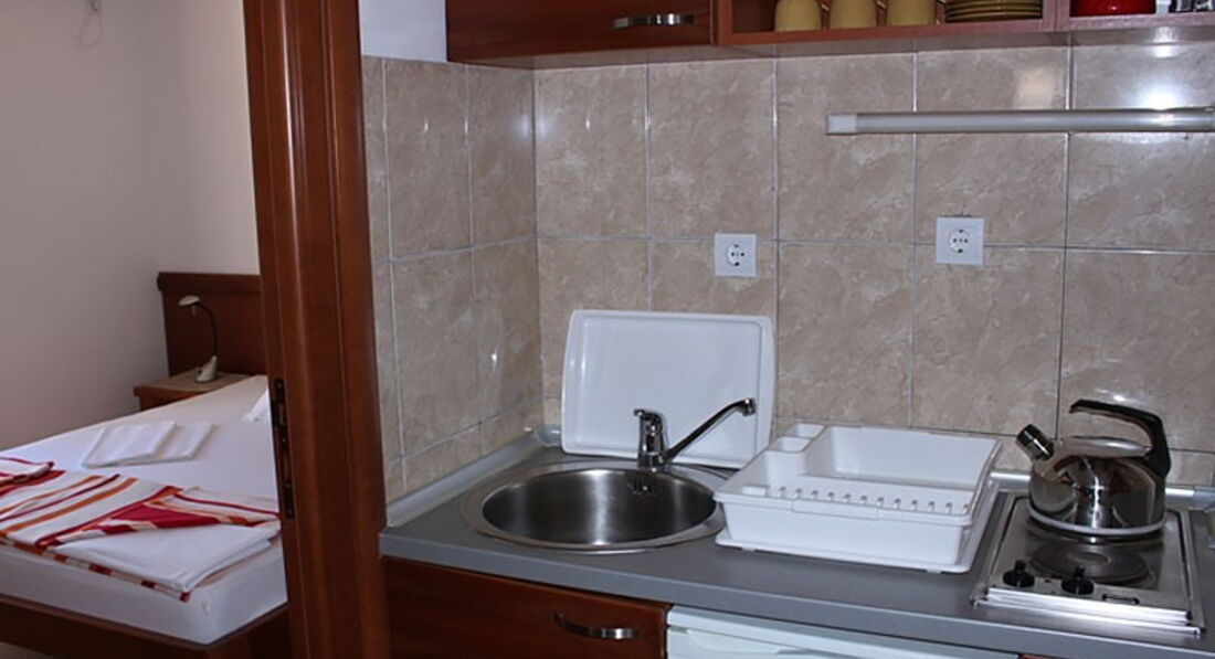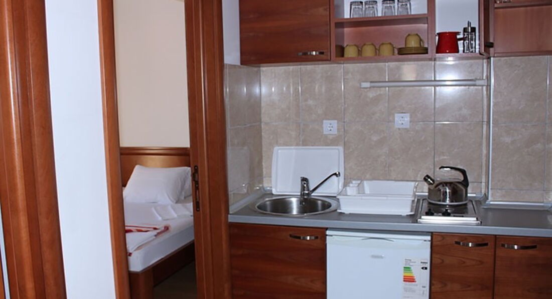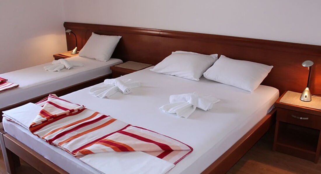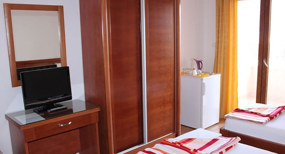 Поверхова будівля пропонує на третьому поверсі: 3 двомісні (один з них з видом на море) та 3 тримісні номери (один з них з видом на море, і один з них – двокімнатний). На четвертому поверсі: 2 двокімнатні чотиримісні апартаменти (один з видом на море, а другий з видом на гори), 2 тримісні апартаменти (один студіо з видом на море, а другий двокімнатний з видом на гори).