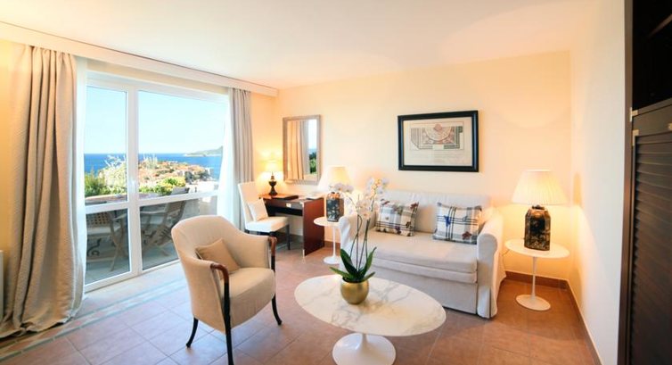1 Junior Suite (№104, 58 м2) з видом на море складається з вітальні та спальні. (Макс.2 дор. +1 дит.)