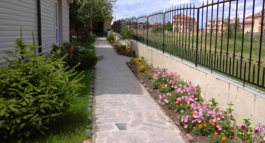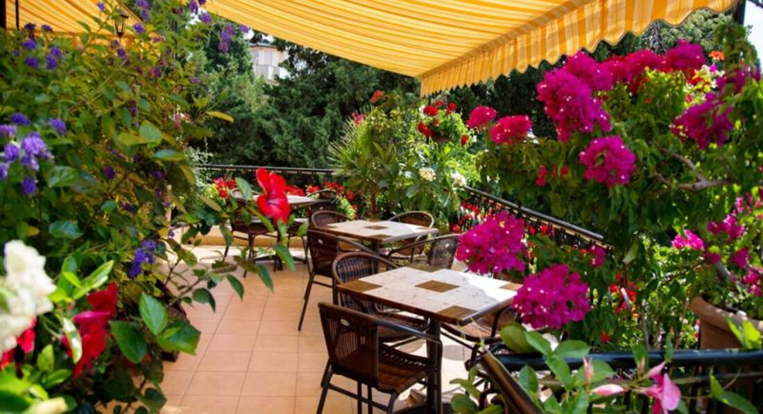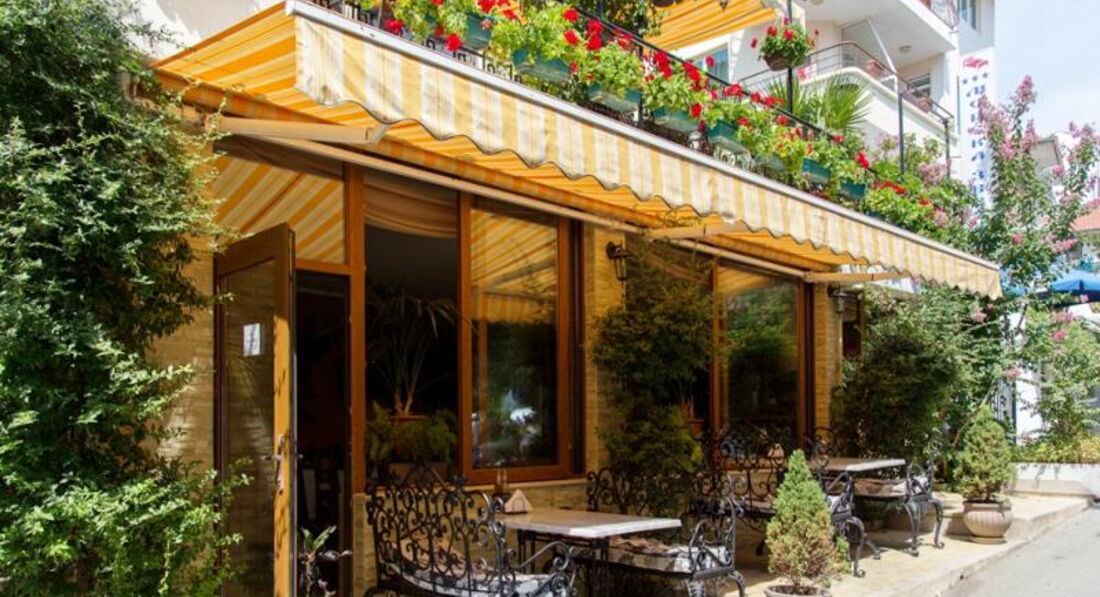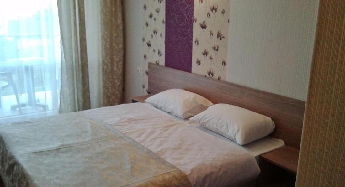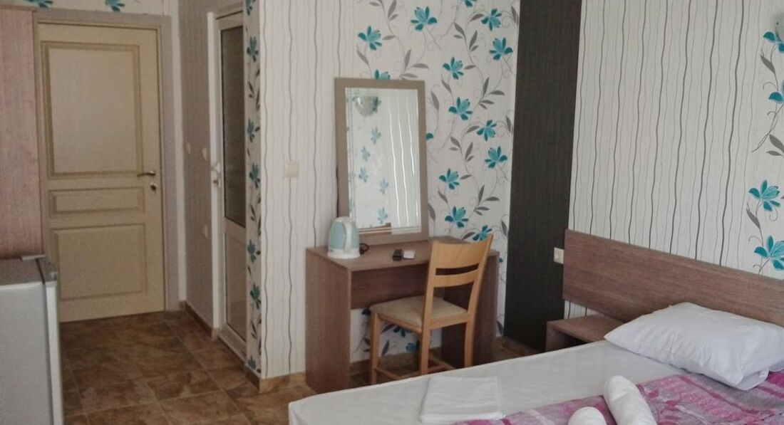 Небольшой уютный отель, весь в зелени, по домашнему. Первый и второй этаж отеля занимает ресторан. Расположение очень хорошее. Все находится в доступности, и центр, и два пляжа (в пяти минут ходьбы). Как говорится - направо пойдешь - на пляж попадешь, налево пойдешь - на пляж попадешь. На одном из пляжей вход в море очень пологий, в самый раз для детей. Пляжи песчаные. Возле отеля - детская площадка. Очень удобно. Пока мы с мужем еще кушаем, дети уже покушали и на площадке играют. По питанию претензий не было, все было очень вкусно, порции огромные. Нам при заселении дали купон на скидку 10% в ресторан. Уборка ежедневная, смена белья - 1 раз в 3 дня. Персонал очень доброжелательный. Wi:Fi ловил отлично. Рекомендую отель для тихого и уютного отдыха. А кто хочет развлечений, пройти метров 150 и аллея развлечений: и кафе, рестораны с живой музыкой, для детей Луна-парк с аттракционами.