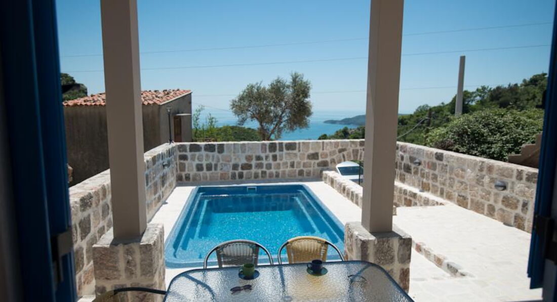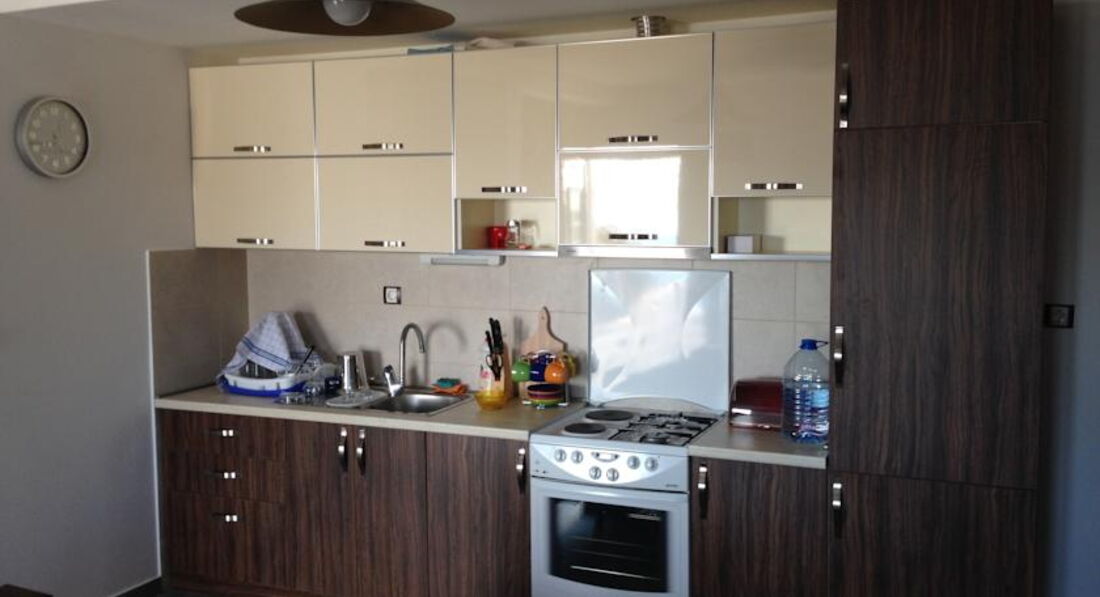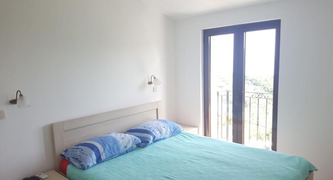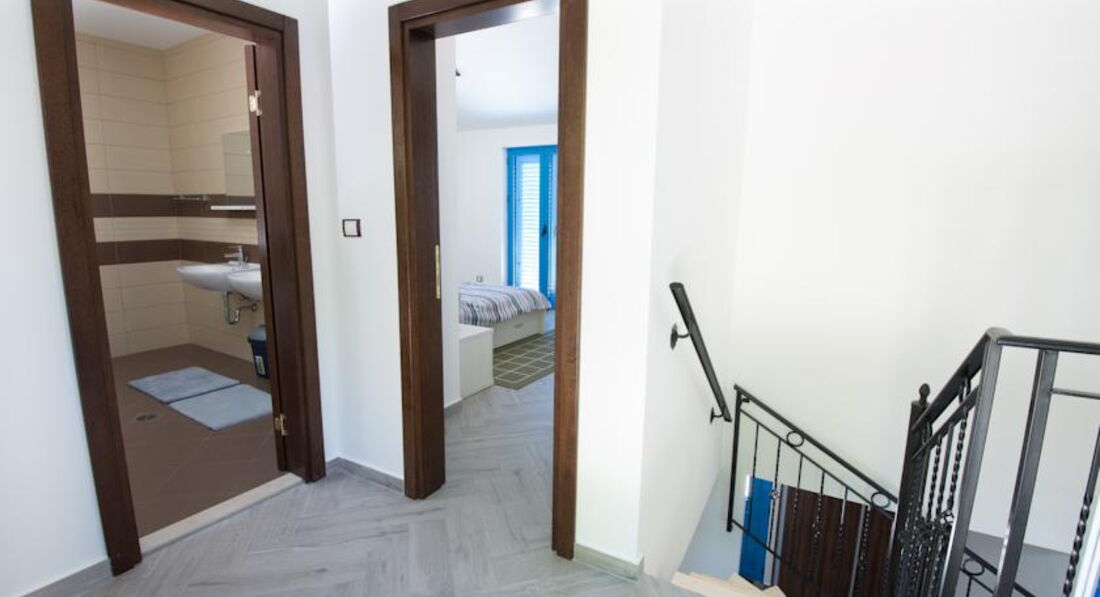 APP: (92м2) на першому поверсі розташована вітальня, повністю обладнана кухня, столова зона, розкладний диван, тераса з прямим виходом до басейну та видом на море, зона барбекю, вихід на паркінг. На другому поверсі спальня з французьким ліжком та односпальним ліжком, ванна кімната з джакузі, пральна машина. Максимальне розміщення 5 дорослих.