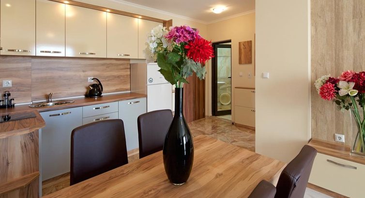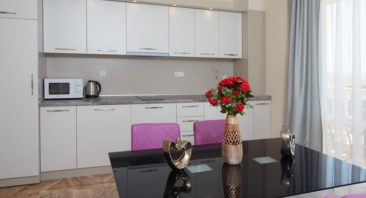 • повністю обладнана кухня з мікрохвильовою піччю, холодильником