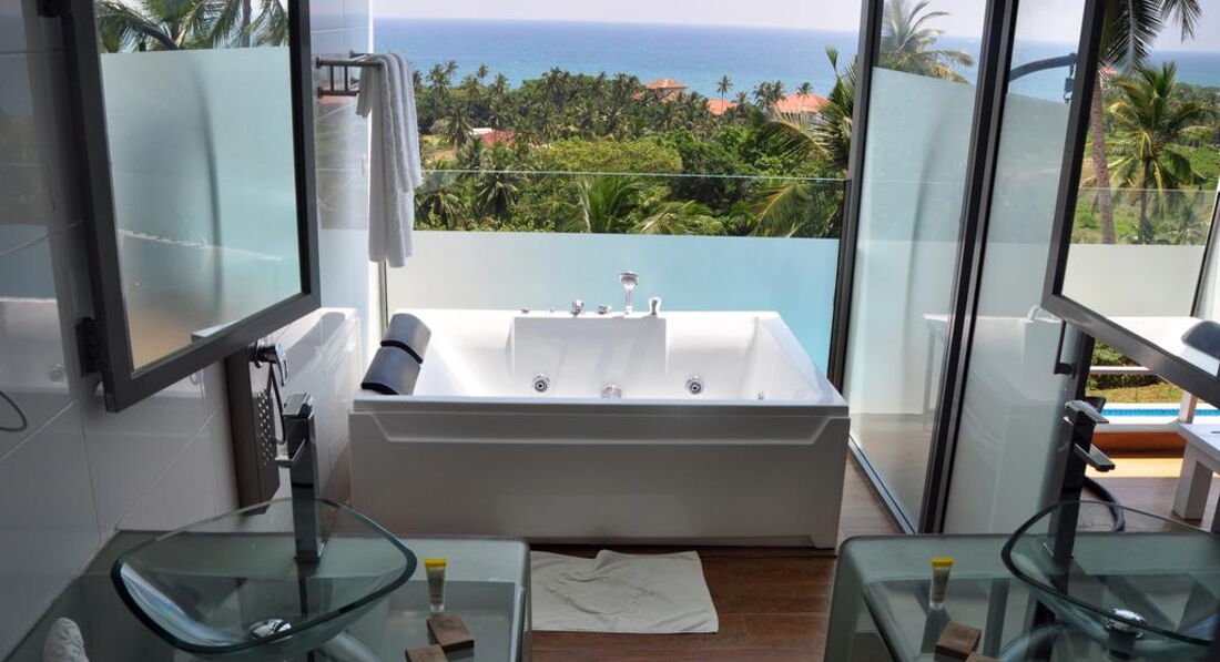 2017 год мы с друзьями решили встретить на Шри- Ланке, выбор пал на данный отель, нашли его на букенге рейтинг 7,7 хотя сейчас уже я понимаю, что неоправданно. Нужно сказать, что в новогодние праздники цена за номер была в районе 25 тыс. руб, согласитесь недешево?! Из аэропорта путь до отеля занял почти 3-3,5 часа, отель находится высоко на горе, брали мопеды чтобы добраться до ближайшего кафе и океана. Все номера в отеле "делюкс" кроме тех, что расположены на 1 этаже с выходом сразу в бассейн. Внешний вид номера, конечно же отличается ,оттого что показано на рекламе отеля: сантехника старая, течет; краска на стенах слазит; вода после похода в душ еще очень долго находится на полу, не уходит. Джагузи находится "под открытым небом" стеклянная стена чуть выше уровня джакузи , поэтому по вечерам насекомые, ящерицы по потолкам пробираюся в номер. Завтраки так себе, однообразные, фрукты не всегда свежие. Ну и подошли к самому главному: в каждом номере сейф( есть пароль, но закрывается на 2 ключа), в который мы любезно оставили на хранение все деньги + новенький айфон. Дак вот, после 7 дней отдыха, начали собирать вещи и обнаружили что из сейфа пропали 1000$, сказать что мы были в шоке- ничего не сказать. С учетом того, что уходя из отеля все ключи забирали с собой! Обратившись на ресепш, они мямлили что-то невнятное, привели какого-то хиленького уборщика (который явно не имел к этому всему никакого отношения), якобы допрашивали его; возвращать деньги конечно же никто не собирался. Поехали в полицию ,написали с горем пополам заявление, после чего даже приезжал полицейский, осматривать сейф, что конечно же ему ничего не дало! Хорошо, что наш турагент живет на Шри-Ланке, прислала своего знакомого "местного", который пытался с ними разговаривать, они в свою очень говорили то одно, тут же меняли свои показания. Итог: в отеле это обычная ситуация, пропажа денег- уже не первый случай, полиции регулярно платится денежка- на все закрывают глаза, а мы простые туристы, сегодня есть- завтра нет.