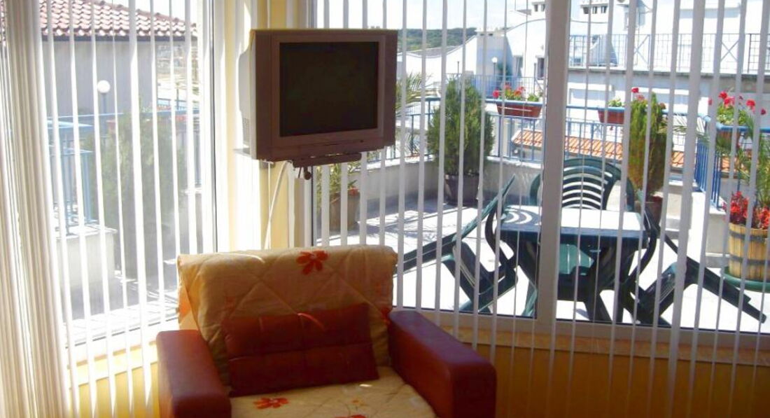 Мы проживали в отеле Лагуна 11 ночей в 12 номере на 5 этаже. Приехали где-то в 10 утра. Нам показали номер 10, сказали, что мы можем заселяться или можем подождать до 12, когда освободится номер получше, и заселиться в него. Это был номер 12, 3-хместный (хотя нас было 2-ое). Оказалось, мы сделали правильный выбор. Номер большой, просторный и светлый. Французские окна от пола до потолка с жалюзи. Очень большой угловой балкон с видом на море. На нем столик и 3 стула, мы там по утрам пили кофе и чай, а по вечерам смотрели фильмы на ноутбуке. Wi-fi отлично ловил из соседнего отеля Rosemary, за весь период пребывания безлимитный интернет нам обошелся в 5 лев (2,5 евро). В номере есть все необходимое для проживания: кровати, тумбочки, стол и стулья, шкаф с вешалками, холодильник, электрочайник, ТВ, душ, туалет, зеркало, много светильников (в том числе и на балконе). Постельное белье и полотенца (маленькое и большое) за 11 дней поменяли 1 раз, уборка производилась каждый день. В номере оставался ноутбук, т.к. сейфа нет, - ничего не пропало. Возле отеля очень много живых цветов, стоят плетеные столики со стульями, и есть кран для мытья ног от песка. Очень удобно, т.к. после пляжа ноги всегда в песке. Вечером очень романтичная обстановка. Хозяева - супруги - очень доброжелательные люди. Сразу подсказали нам лучший банк для обмена валюты (Allianz), магазины, пляж и прочее. Курс евро =1,95 лева, в остальных банках ниже - 1,92-1,94, доллар - 1,34. Этот банк работает только по будням до 17:30. Он находится в 150 м от отеля. Вообще расположение отеля очень удобное: до моря меньше 100 метров, рядом обменник, палатка с фруктами, скверик с детскими качелями, торговая улица. За продуктами и фруктами лучше ходить в порт, там значительно дешевле (площадь Святой Марины), там такие боксы, похожие на гаражи. Кушать мы ходили в Ветряную мельницу возле отеля Селена. В ней есть порции по 800 г, на двоих более чем достаточно, по цене 8-9 лева (4-5 евро). Средний счет на двоих выходил около 17-20 лев (8-10 евро), в него входил куриный суп (очень вкусный), второе (рис или спагетти), хлеб, напитки.