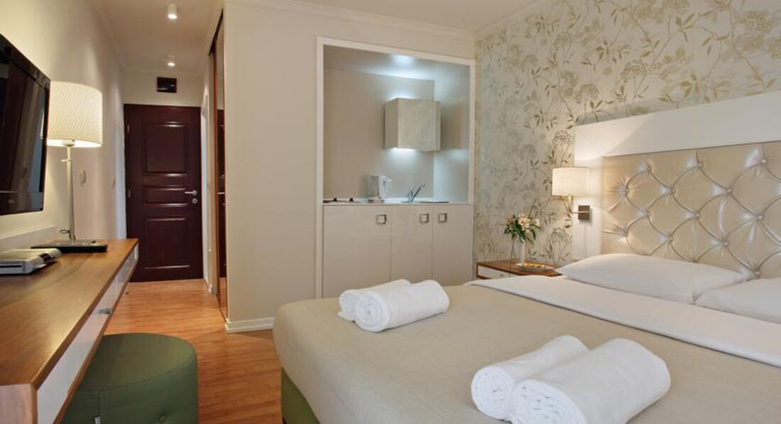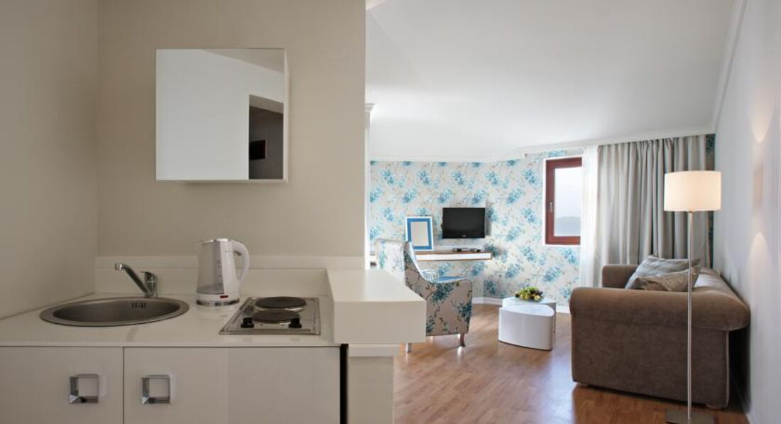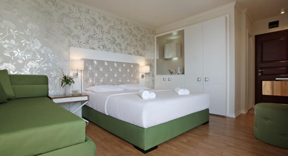 АРР: (35м2-45м2) чотиримісний номер, має вітальню з сучасними меблями, і спальню, балкон з видом на море.