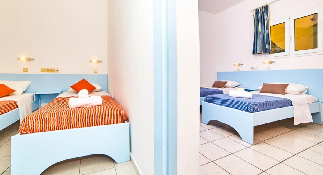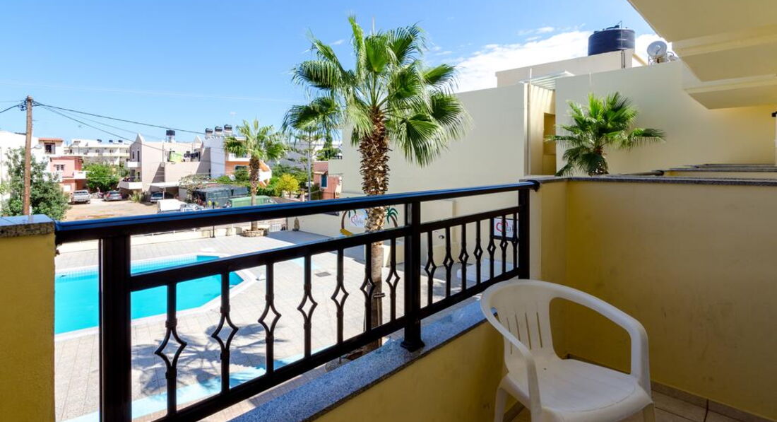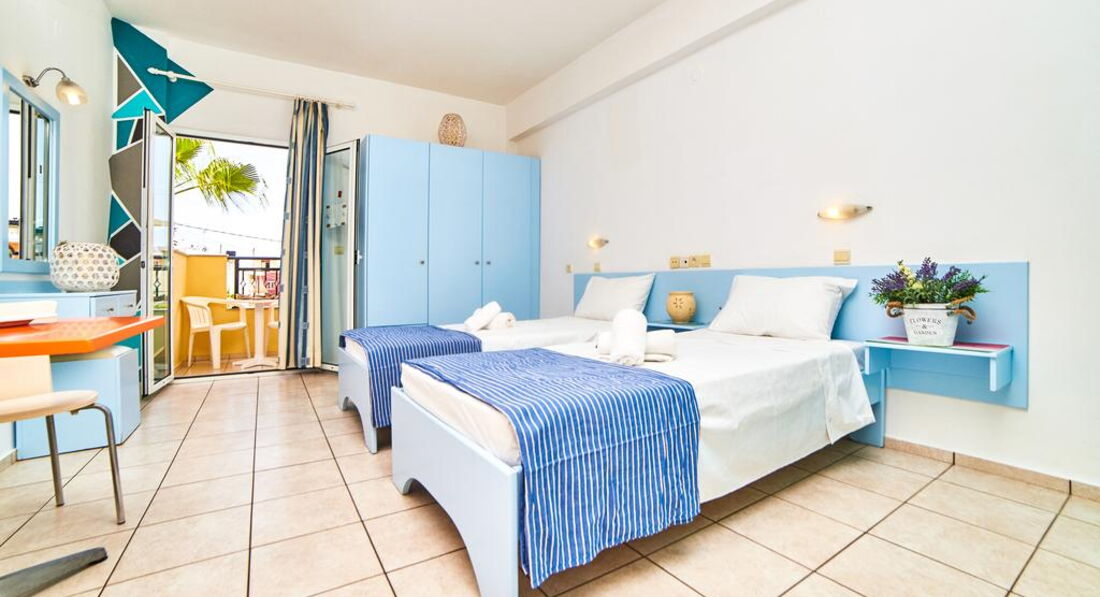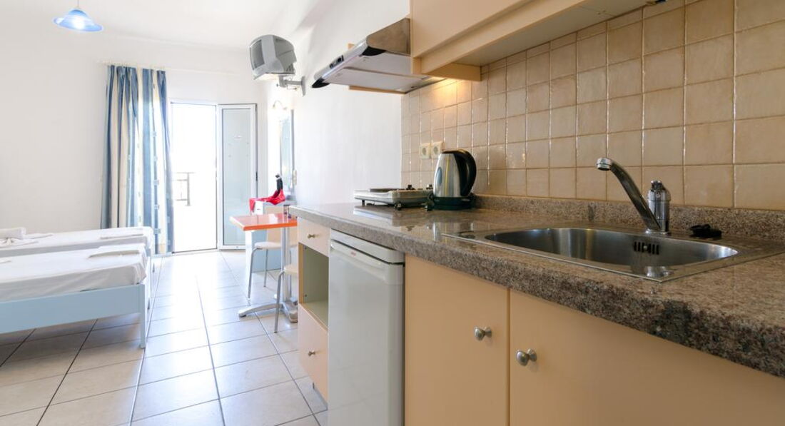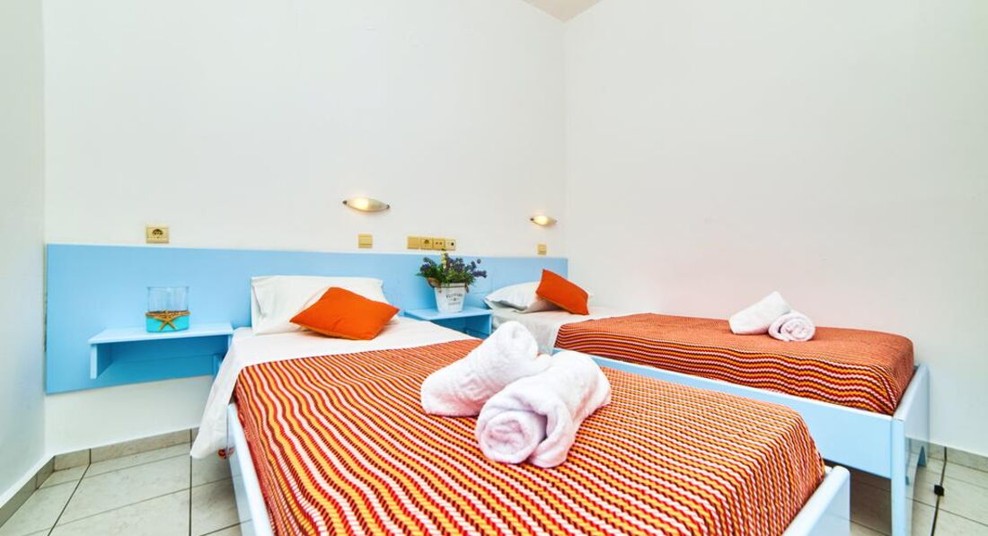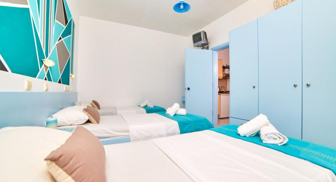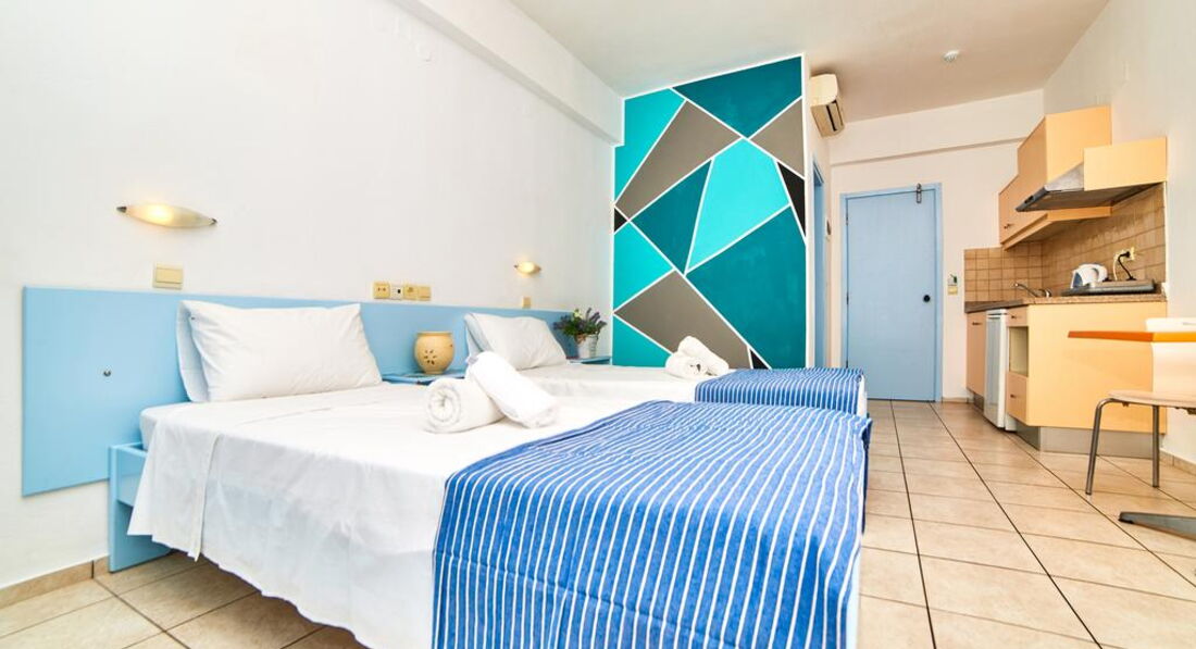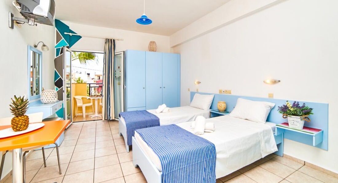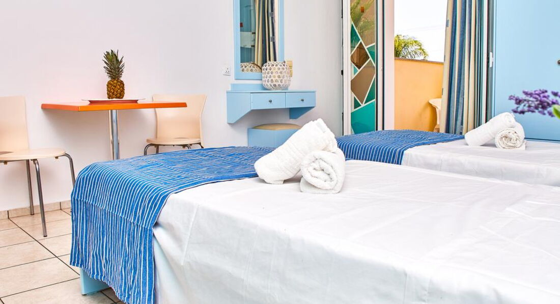 Типи номерів: 17 STANDARD STUDIO (17-20 кв.м) макс. розм. 3 чол, однокімнатний номер з кухонним куточком, балкон/тераса. 11 APARTMENT ONE BEDROOM (30 кв.м) макс. 4 чол, складається зі спальні та вітальні з міжкімнатними дверима, кухонний куточок, балкон/тераса.У номері: душ фен (за запитом) чайник холодильник праска (за запитом) wi-fi (платно, 1 євро за ніч) сейф (платно) обладнаний кухонний куточок балкон/тераса