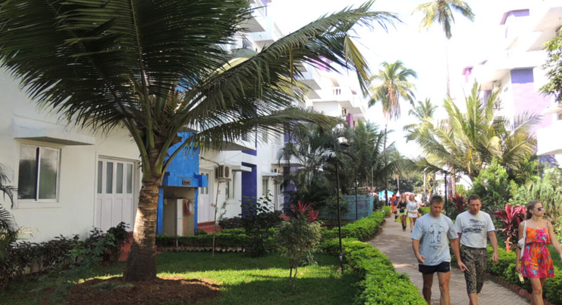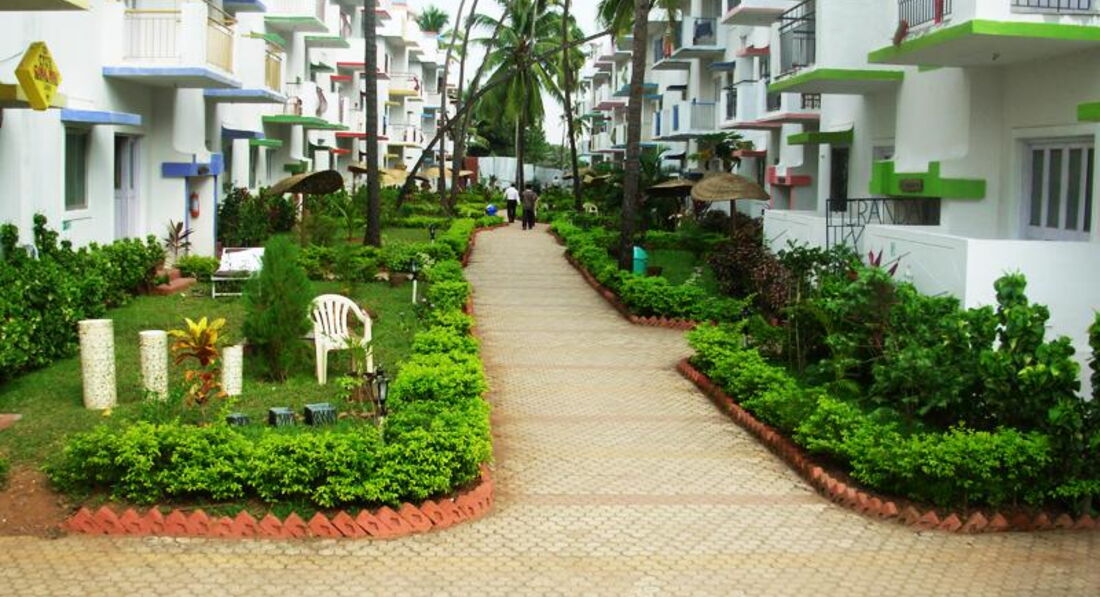 Приехали в отель мы рано, около 8 утра были на месте. Сказали заселение в 12, но заселили в 11. У нас была пометка день рождения (никакого презента от отеля, кстати, не ждите) и медовый месяц, плюс я тут бронировала номер, но это не помогло. Заселили на 2 этаж комната М7, по началу все показалось не так уж плохо даже. Но холодильник и телевизор не работали, водонагреватель не справлялся каждое утро нас ждал бодрящий душ, под телевизором розетка вывалилась вместе с землёй. Но кровать была нормальная и постельное чистое, что для нас было главным. Ещё в номере кучи комаров по ночам, позаботьтесь дома об этом. Нас спасал раптор в розетке. В отеле отдыхают немцы и русские, которые ну не очень тихо ведут себя по ночам (в первую ночь у нас всю ночь искали какого-то Леху, потом в соседнем номере заселились две женщины любящие выпить и громко попеть), хорошо я была с парнем и если совсем наглели он выходил и делал замечание. Персонал приветливый в отеле, если дело не касается переселения всегда помогут. Территория у отеля красивая, бассейны хорошие, в ресторане вкусно и цены нормальные. Главное берите мопед и сами объездите все пляжи и форты. Иначе делать на ГОА просто нечего, на Калангут сходили один раз и больше не возвращались. Многие вообще уезжают в домики на берегу на все дни, возвращаются перед улётом. Вообщем, если отель вам нужен чисто помыться и поспать, вы не сидите в номере днём, то можете смело останавливаться тут. А в саму Индию я влюбилась. Атмосфера просто непередаваема. Обязательно вернусь сюда, только, наверное, уже в район Арамболя, слишком далеко было ездить.