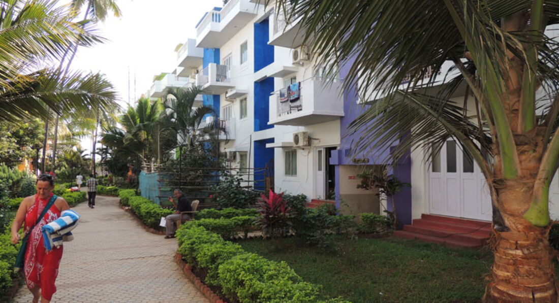 Намасте друзъя!На ГОА во второй раз, первый раз отель на Бага рядом с пляжем был,этот выбирали из расчета,что не будем жить в отеле,а на скутерах уезжать на другие пляжи и снимать бунгало.Размещение-приехали утром за 4часа до заселения(заселение в 12ч),можете оплатить и заселиться раньше,но мы успели на завтрак,прогулялись и дождались 12ч.На рецепшене за 100рупий сутки сняли сейф,так же можно за 100рупий подключить фиви,но на 6часов.Помогли донести чемоданы до 4го этажа, за отдельную плату(500рупий)притащили холодильник.Сервис-полотенца еще более менее чистые,но простынь ужас,в пятнах,но заранее были подготовлены и привезли свою.Кондиционер сломался на второй день,но мы ночевали в отеле всего несколько ночей и поэтому было наплевать.Ночью не так жарко.От насекомых на всякий случай ставили раптор.Ни разу не убирались(хотя возможно надо было самим говорить об уборке на рецепшене).Питание-в целом как и во всех Азиатских странах,где только завтрака ,кофе,чай и бутерброды и по стаканчику разбавленного сока.В целом территория отеля красивая,ухоженная,имеется 2бассейна,хлорки много,вода прохладная,самый раз для такой жары,правда кому он нужен?только тем туристам,которые поменяли Египет и Турцию и почти не выходили из отеля и были в Ужасе от страны.Никто чистую Индию и в частности Северное ГОА не обещал,надо читать и спрашивать,кто уже был тут ранее.Здесь другая атмосфера и не все ее понимают.Хотя если уезжать на пляжи Арамболя,то там почище и "местных"минимум.У нас знакомый в этот отель туже в 3раз приезжал в ноябре и в целом доволен,т.к. цена-качество соответствует.Но не советую тем,кто не умеет ездить на скутере,т.к. до пляжа только на такси,150рупий в одну сторону.Всем удачи. И, шукрия(спасибо) за внимание!