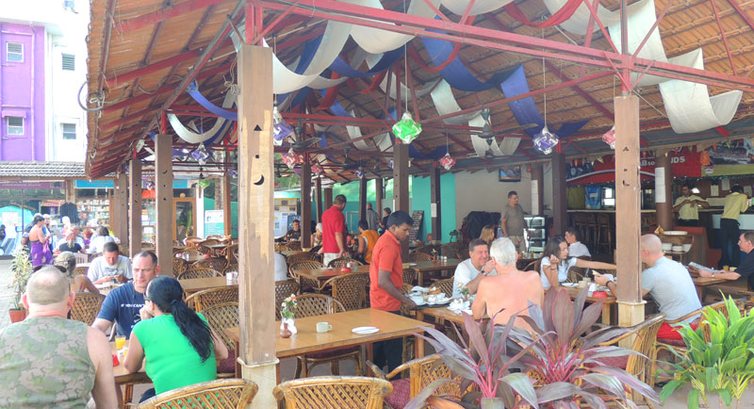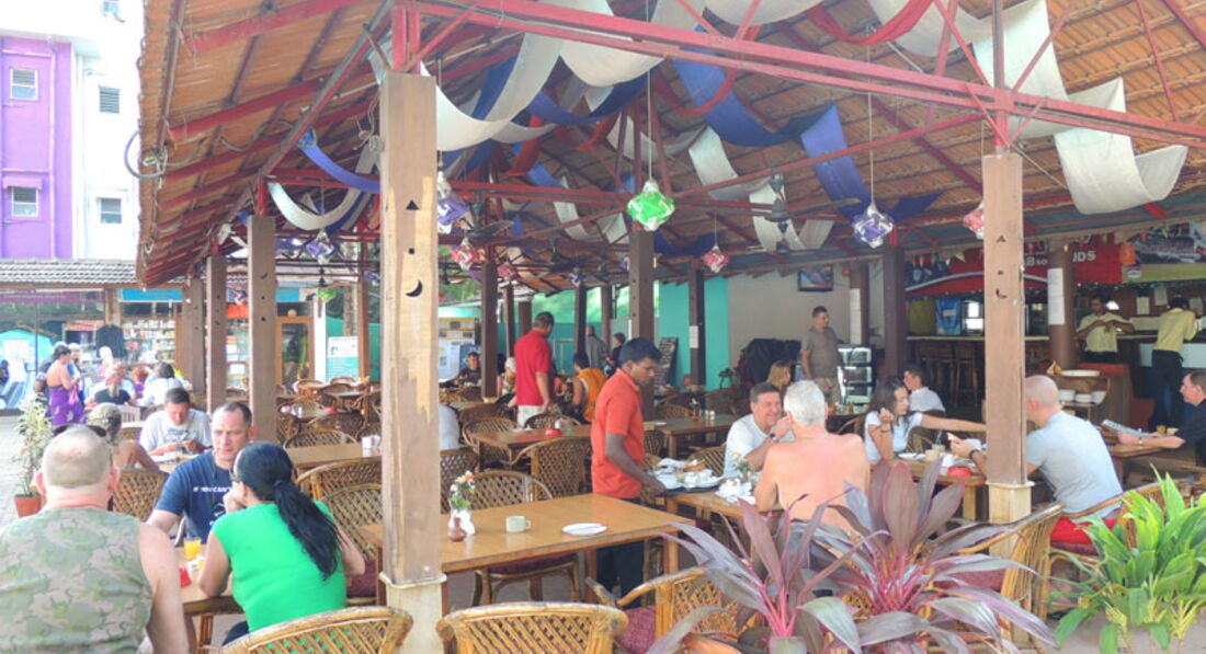 В отеле есть кафе под эдаким шатром. Как кормят не знаю, ни разу не питался, так как в тех же пляжных шейках дешевле, не говоря уже про кафе, где едят чисто индийцы.