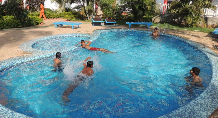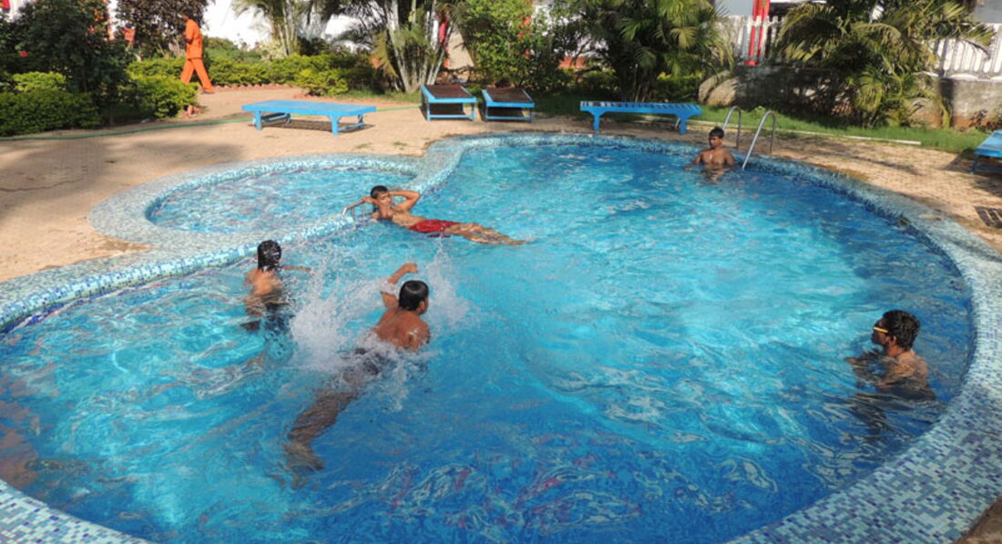 один бассейн вполне чистый, можно загорать и купаться, второй не пригоден для отдыха, тем более его толпами всегда атаковали индусы.