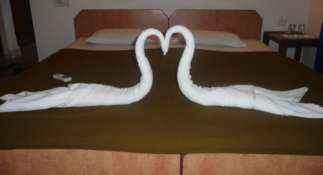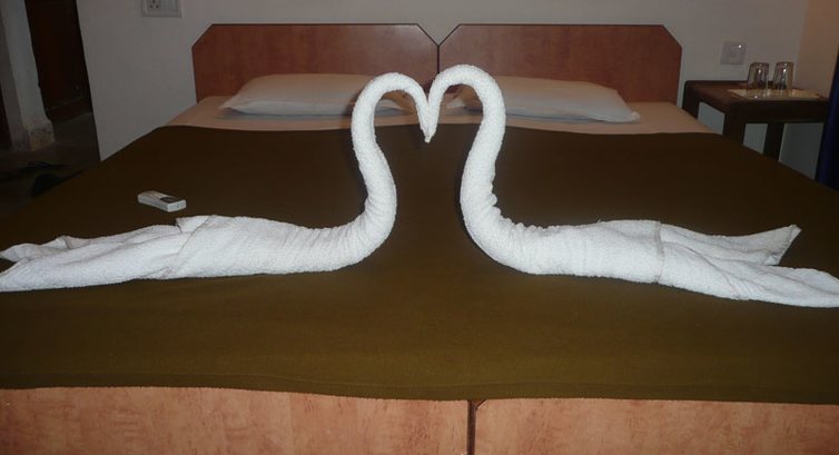 Отдыхали в феврале вдвоем с подругой. Отель 2 звезды, все просто, достаточно чисто, убрано, отношение персонала доброжелательное. Всегда поздороваются, спросят, как дела. Прилетели в 8 утра, в отеле были около 10, засели сразу же. Номер простой: две кровати, тумбочки, шкаф для одежды, два стула, балкончик, вентилятор потолочный. Санузел: унитаз, раковина, зеркало, душ в стене. Убирали по требованию, мы оставляли то шоколадку, то пачку чая, то доллар. Белье и полотенца меняли раз в 2-3 дня во время уборки. Для Индии, для отеля 2 звезды, я считаю, хорошо! У меня претензий нет. Насекомых в номере не было, воровства тоже нет. Хотя мы все убирали в чемодан под замок. Берите с собой мыла, шампуни, фен.