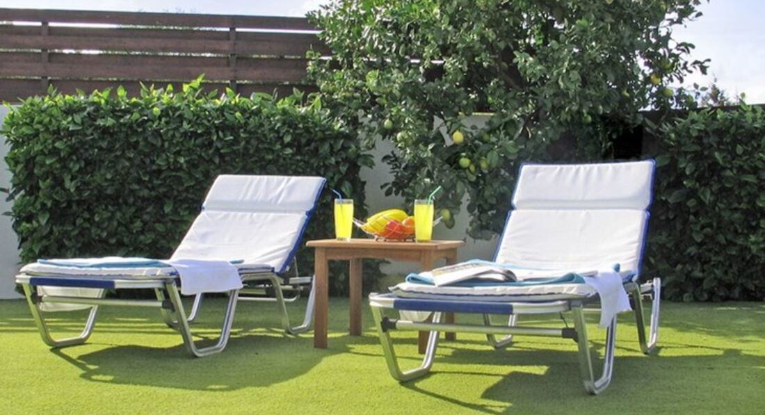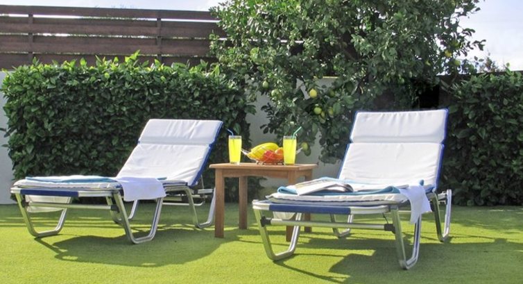 • тераса з шезлонгами