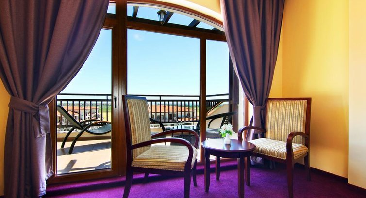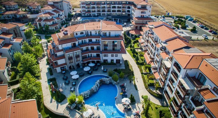 Розташування: на вершині пагорба поблизу гір Ахелой, звідки відкривається чудова морська панорама, відстань від аеропорту Бургас (BOJ) – 15 км.