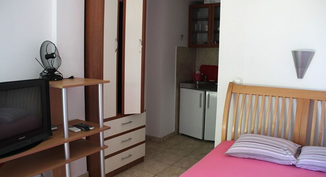 Studio: (25м2) однокімнатний номер із французьким ліжком у скельній кімнаті.