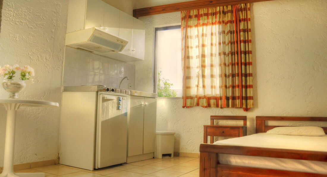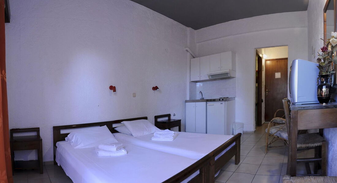 Типи номерів: • 18 Double Room (основна будівля, 18-25 м2, вид на басейн, макс. розм. 2 чол., Одна спальня та ванна, балкони у всіх номерах).У номері: • туалетне приладдя • фен • індивідуальний кондиціонер (платно) • супутникове ТВ • електрочайник (за запитом) • міні холодильник • праска та прасувальна дошка (за запитом) • wi-fi (безкоштовно)