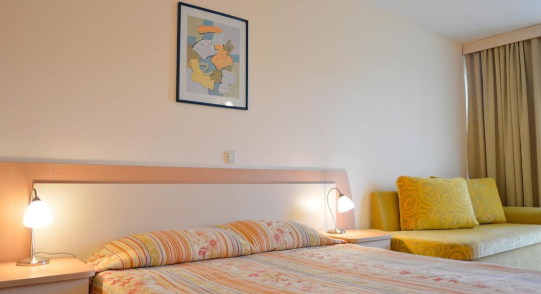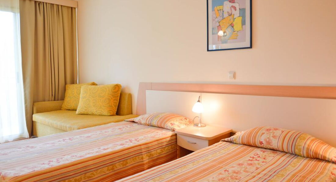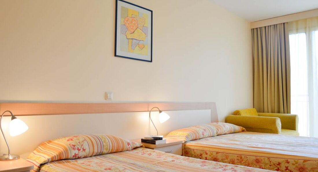 Решил поделиться впечатлением о первом семейном отдыхе с дочкой (2,4года). Заселение как известно после 14:00 часов, время прибытия 15:30 номер оказался не готов попросили подождать 10мин (после 12 часов в дороге) через 10 минут ещё 10 минут и так прождали пол часа. Номер поверг в шок не то что мою жену и меня самого. Предполагалось что номер убран, но постельное белье было чем то запачкано, стены в туалете с душем к стати там простая шторка и вода везде все плывет. окна выходили во двор прямо на бассейн и амфитеатр фактически колонка орала прям в номер. закрытие дверей балкона не дали никакого результата к закрытым дверям посмотрев сколько пыли и грязи в кондиционере фильтры там скорей всего не меняют и даже не чистят я не решился его включить.. Все это подвергло меня пойти и возмутиться на ресепшине после того как была предложена небольшая сумма мне сказали что нас могут пересилить в удовлетворяющий нас номер завтра и попросили подойти к 12 т.е. первый день остался на чемоданах. Следующий день переезд в другой номер тихий спокойный с видом на море на 6ом этаже. В последствии как выяснилось соседствовали и делили мы этот номер с муравьями) которые в любой удобный случай выбегали из под плинтуса и устраивали себе пикник ну это было не так страшно).. плитка на полу как следствие после моря весь пол был в песке и автоматом переводилась на постель. Номера не убираются постель не меняется за все 12 дней прибывания, только приходит уборщица делает вид что убрала, повесила полотенца заправила кровать натерла пол (песок при этом остается) и все. + могу сказать что кухня у них хорошая больше адаптированна под русских отдыхающих. Если закрыть на все глаза отдохнули хорошо т.к. ты сам себе задаешь настроение. Но скорей всего в Албену мы больше не вернемся.