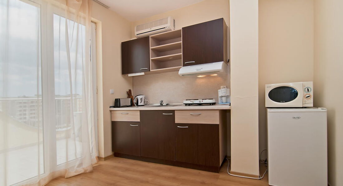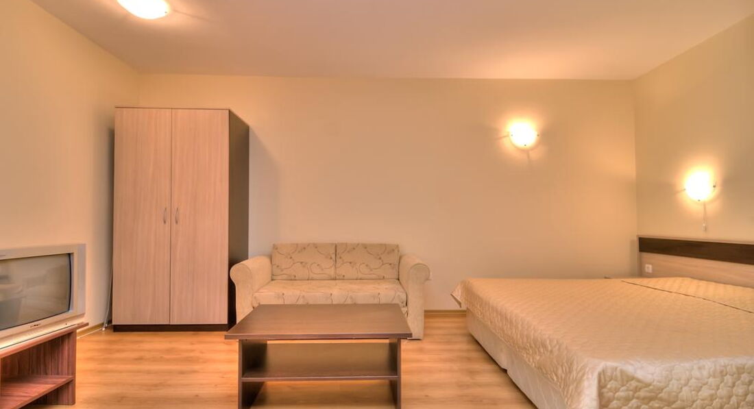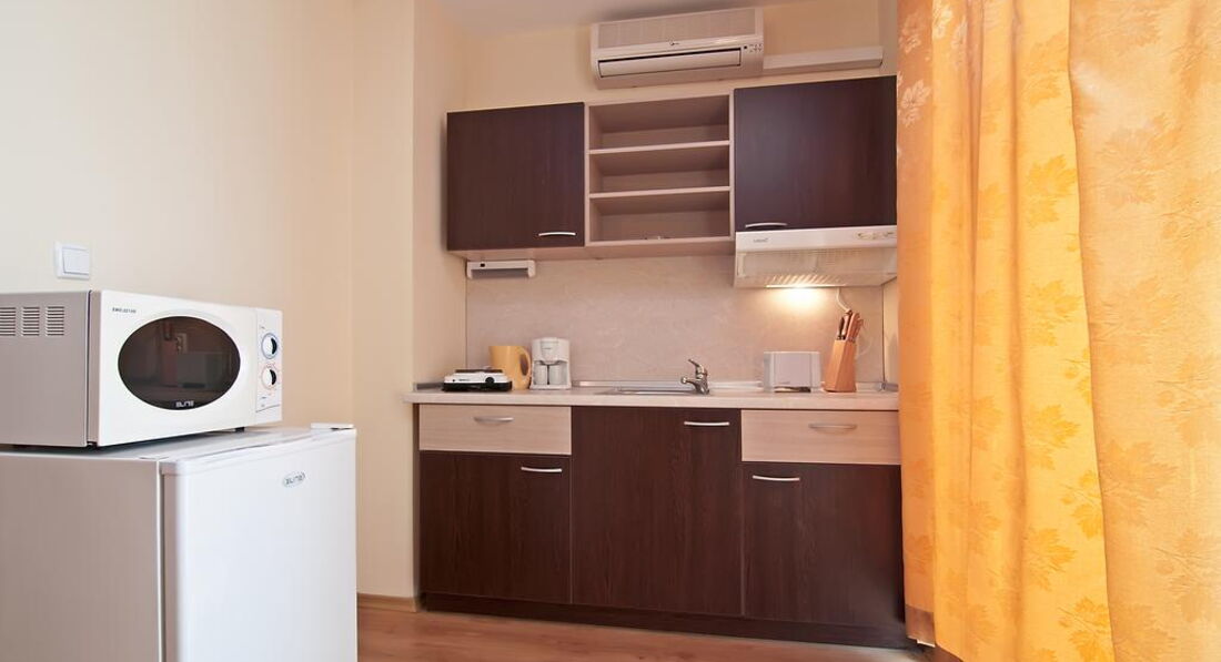 Все ожидания оправдались. Получили отличный отдых по цене и качеству. Если вы умеете готовить и не стесняетесь легкой домашней кухонной суеты (когда надоест ходить по кафе и ресторанам) - создается отличная семейная курортная атмосфера. Море рядом, прогулка к нему - легкая разминка перед тем как окунуться в теплые волны. Никто не мешает "навязчивыми услугами". Живешь как дома у моря. Тихо во дворе. Приятно с бокалом вина и фруктами посидеть на балкончике. ТВ принимает "Первый канал" и НТВ (этого достаточно, чтобы быть в курсе событий в России, если совсем "не спится" вдали от Родины). Каждый день - пешая прогулка в городок-музей Несебр. Обратная дорога на автобусе или паравозике прогулочном. Нашли хороший овощной рынок, где постоянно брали фрукты и овощи Болгарии (вкуснейшие). В Несебре можно купить свежую рыбу, пойманную рыбаками, а затем приготовить её в отеле в своём номере (как буд-то сам был на рыбалке)