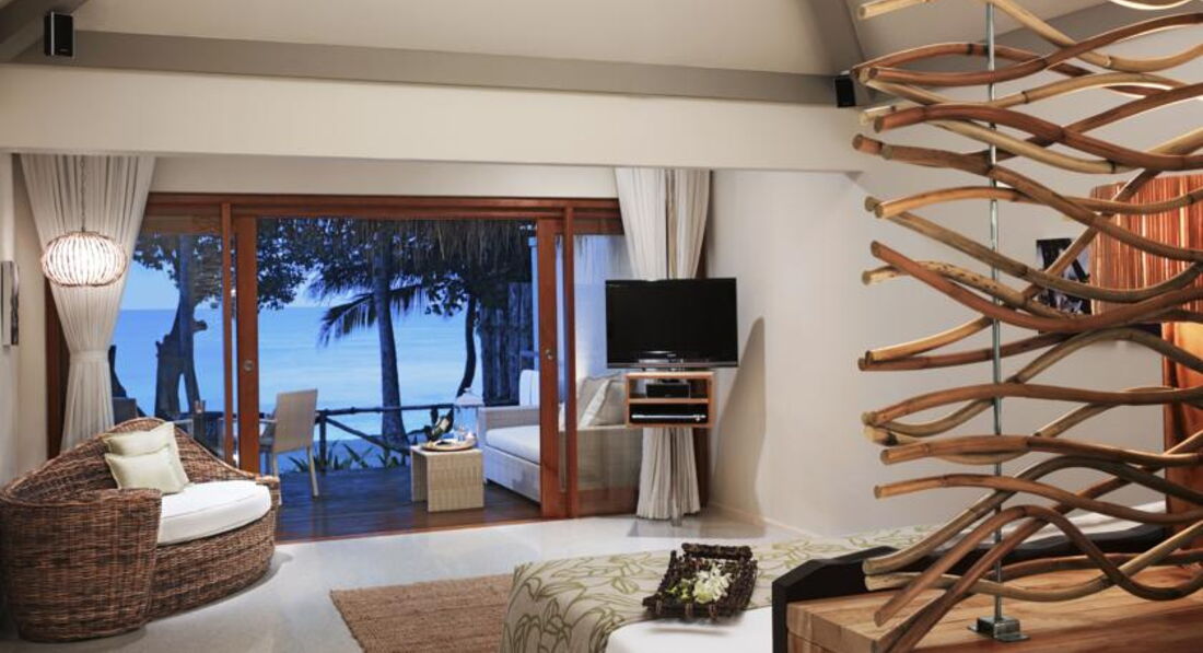 12 Charm-Beach Villa (58 м ², макс. 2 чол.). Просторі берегові вілли, що згруповані в блоки по 2 номери. Елегантний декор номерів у пастельній гамі, ліжко king-size, звернене у бік океану, ванна з зливовим душем (іноді з ванною), душ на відкритому повітрі, приватна тераса з гамаком та лежаками. Можливі суміжні номери. У номері не можна поставити додаткове ліжко (extra bed).