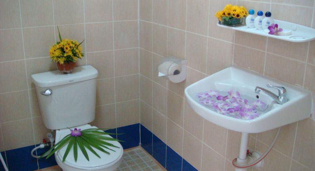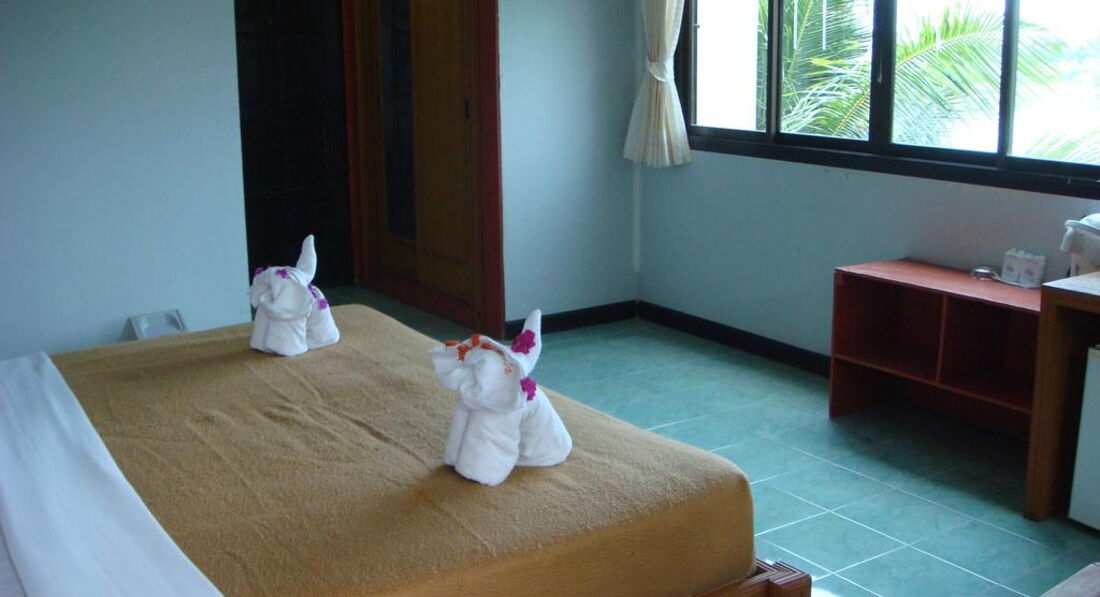 По факту - неубранный раздолбанный номер: неработающий мигающий свет, открытая бутылка в холодильнике от предыдущего гостя, пробки на полу от пива, волосы в кровати, пустые флаконы в ванной из-под шампуня и тухлая губка - там же. В отеле куча свободных номеров - на тот момент в резорте было заселено максимум 5!!! , но номер нам дали на 3-ем этаже, с видом на задний двор-помойку , открытый туалет с унитазом и соседей с ребёнком. Ребята, не бронируйте это "чудо" , есть куча отелей за 1000 бат с завтраком - более симпатичных и с отличной локацией.