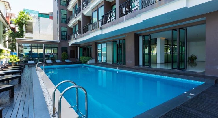 Жила в этом отеле в ноябре 2014 года,выбирали отель в центре чтобы и тихо было и до волкин стрита и пирса недалеко было..ходили несколько раз пешком..идти минут 20..но если свернешь не в тот проулок можно заплутать...) не полаоеку находится Тукком...тук туки мимо этого отеля ходят не понятно как..сели раз проехали пол пути он встал и сказал мол все сабай дальше не еду.)))поэтому чаще всего мы брали прямо на выходе из отеля такси-мотобайк и ехали с подругой вдвоем за 50 бат.) непосредственно о самом отеле: ездили через Анекс тур..привезли в отель нас около 16-00 часов.. тайский сопровождающий которая с моим плохим зрением сначала показалась милой миниатюрной девушкой оказалась бывшим парнем, но все равно милая,нам надо было обналичить деньги с карты чтобы внести депозит..100 баксов или 3000 бат. она сходила с моей подругой до банкомата который находится совсем рядышком с отелем показала как им пользоваться, и уехала когда нас уже повели в номер.) номер хороший,на 7 этаже с видом да дворик отеля,балкончик небольшой, на нем стояли 2 стула так что вечерами можно было посидеть там попить рома с колой.))в номере: 3 больших кровати прикроватные тумбы, туалетный столик с зеркалом,ЖК телевизор, шкаф,сейф(с ним я никак совладать не могла,поэтому им занималась моя подруга),чайный набор(чайник,кружки,ложки,сахар чай,кофе),стена в ванной стеклянная.))внутри завешена шторкой,в ванной фен,мыльные принадлежности полотенца, все ка положено, ну и раковина,ду. Убирались каждый день, все,заправляли, складывали,белье естественно каждый день не меняли да и зачем? мы же не хрюшки..все так пачкать.) персоонал вежливый, на все наши просьбы оперативно откликался и когда мы не могли с сейфом разобраться,несколько раз звали милую бабульку-уборщицу она соответственно звала нужного нам человека,на респшен,тожобращалась когда с подругой разменулись и я осталась без ключа в 2 часа ночи,без проблем,сходили со мной открыли мне дверь.) аш этаж нам показался пустым..только потом увидели еще своих же русских..расселяют они видимо исходя из нации,китайцев в отеле было много но мы их видели только рано утром когда их массово всех увозили на автобусах..вечерами сидели у бассейна рядом с небольшим тренажерным зальчиком,бассейны конечно маленькие..но и народа в них особо не было..только мы русские там заседали.)) А ну и да,конечно же питание: всего в достатке, голодными не останетесь,)) В общем отель мне вполне понравился но расположение не совсем удобное..в закоулках можно заплутать..((