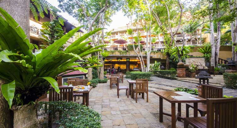 Несмотря на то, что отель расположен на оживленной улице, на территории очень тихо, царит тропическая атмосфера с великолепным видом на горы.