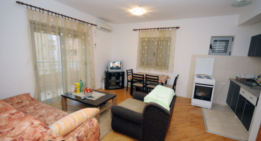 №1 APP 02+1: близько 35 кв. + тераса 10 кв.м з видом на вулицю, вітальня з розкладним диваном та кухнею, спальня – французьке ліжко; душова кабіна.