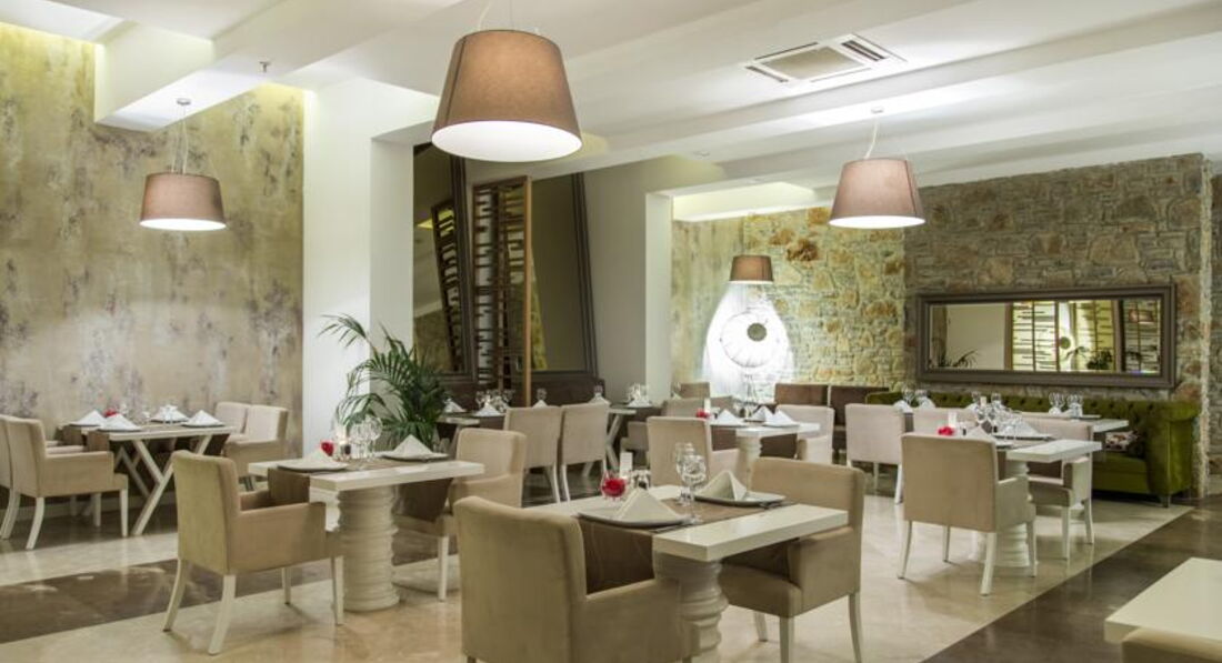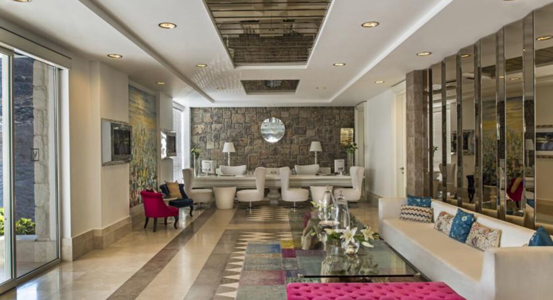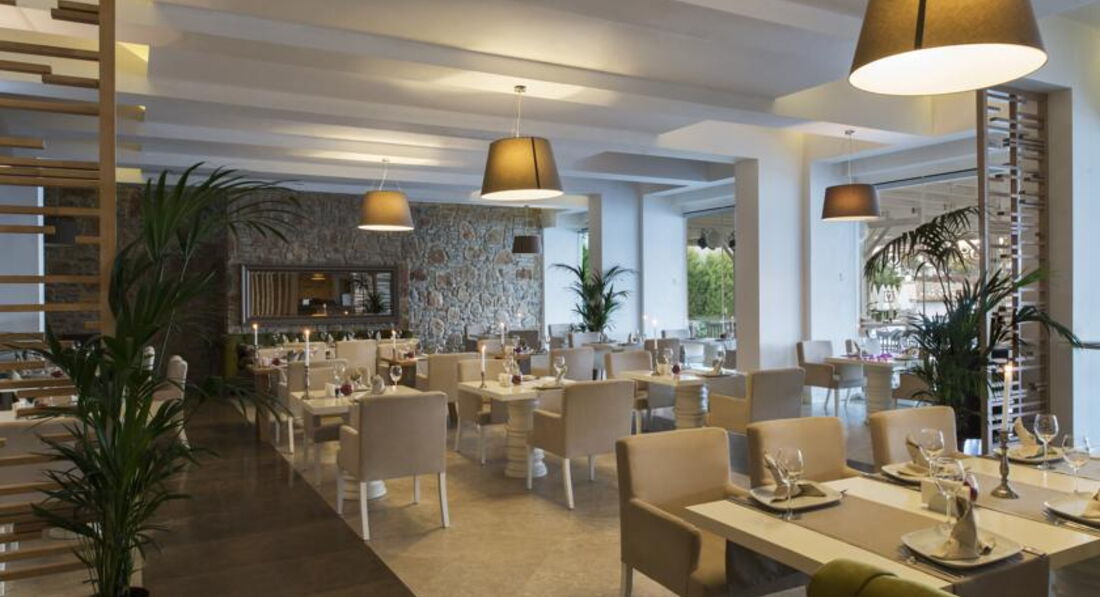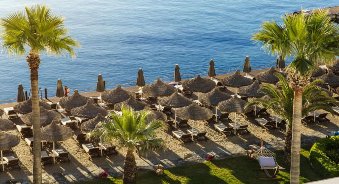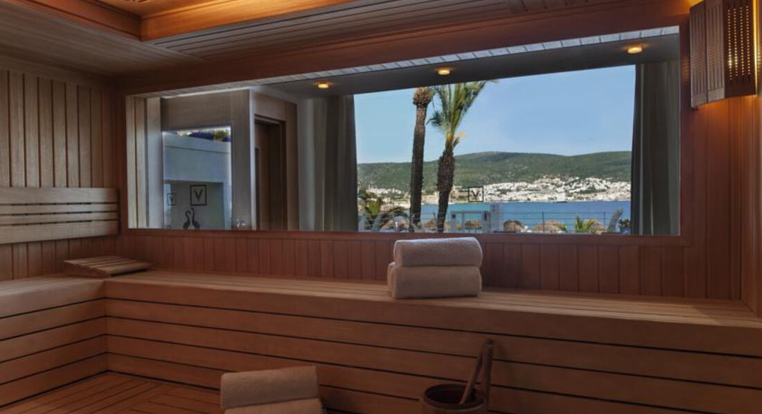Великолепный отель с компактной красивой территорией, отличным сервисом и превосходной кухней. Очень вежливый и дружелюбный персонал. Комфортный пляж с ночной подсветкой пирса и великолепным видом на Бодрум. Всего пару раз выбирались на водном такси в Бодрум, стоянка рядом с отелем, лодки ходят часто, очень удобно. Ландшафтный дизайн - выше всяческих похвал, очень много зелени и цветов, радует глаз на каждом шагу. Качественная ежедневная уборка, все туалетные принадлежности приносили каждый день, мини-бар пополнялся также каждый день. Номер чистый, кажется, что новый, всё удобно и красиво (хотя брали самый дешевый). Приятная шоу-программа каждый день, смотрели с удовольствием. Пару раз поиграли в настольный теннис. Ну и, конечно же, нельзя не отметить превосходную кухню в этом отеле - это что-то!!! Все вкусно, разнообразно и красиво подано в большом количестве. Изобилие морепродуктов, рыбы, сыров, сладостей (объедались пахлавой). Даже роллы были. Можно долго перечислять А-ля карт - высший класс! Пожалуй, это - лучший отель в нашем списке!