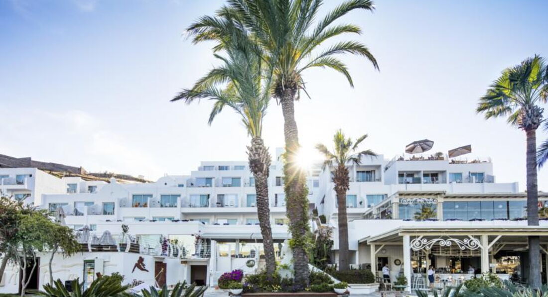 Пляж небольшой. Узкая полоса насыпного песка, где лежаки стоят в три ряда. Вход в море есть по лестницам с забетонированной набережной или с плавающего понтона. При заходе в море попадается галька и водоросли, но можно найти удобный заход, который ближе к соседскому пляжу отеля "Салмакис".