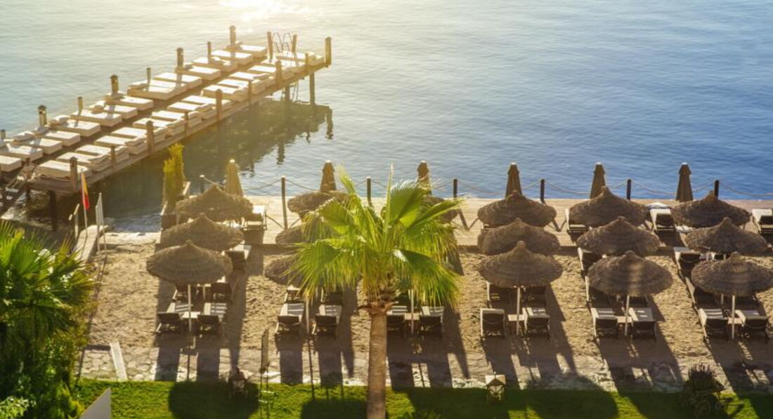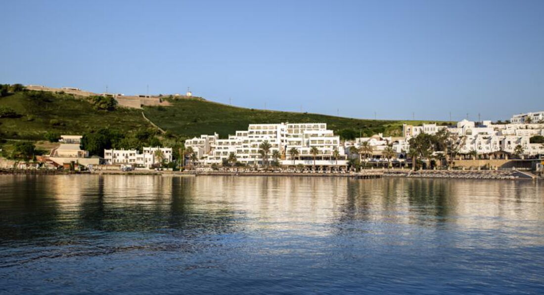 Расположение отеля: одно из лучших - в центральной бухте Бодрума. 5 мин до центра на машине или 10 мин на водном такси-катере, который часто курсирует между отелем и центром города.