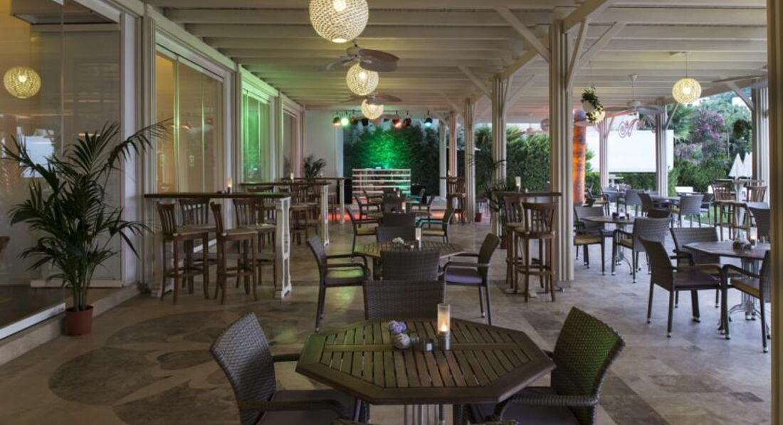 Тип отдыха: романтичный и спокойный. Из развлечений только DJ в течении дня и выступления турецких исполнителей всемирноизвестных хитов по вечерам. Зато КАКАЯ музыка!! Анимации как таковой нет. Еще предлагаются различные виды водного спорта.