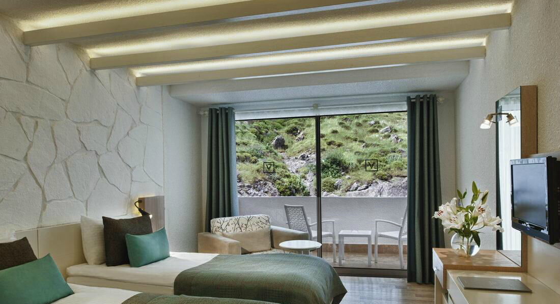 8 двокімнатних suite (вітальня, спальна, макс. 4 чол., 35 м2).