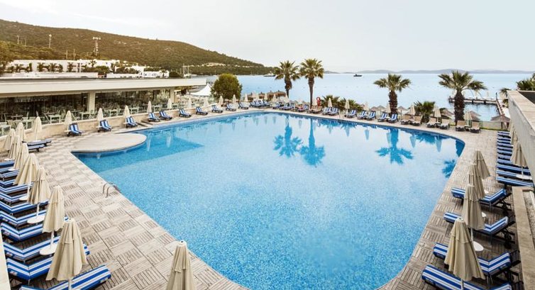 Отель для молодёжи. Высокий уровень сервиса и обслуживания, хорошая анимация и дискотека на территории. Также есть горки. Вобщем для активных туристов. Пляж галька, вход в море есть камешки, как и везде в бодруме. Питание отличное, выбор большой и довольно забавный перевод названия блюд на русский язык))повеселил) Единственный минус маленькие по площади номера. Как-то уж очень скромненько они выглядят для 5*, да ещё по высокой цене. Особенно контрастирует сильно на фоне Baia Bodrum. А так всё отлично, буду отправлять своих туристов в этот отель