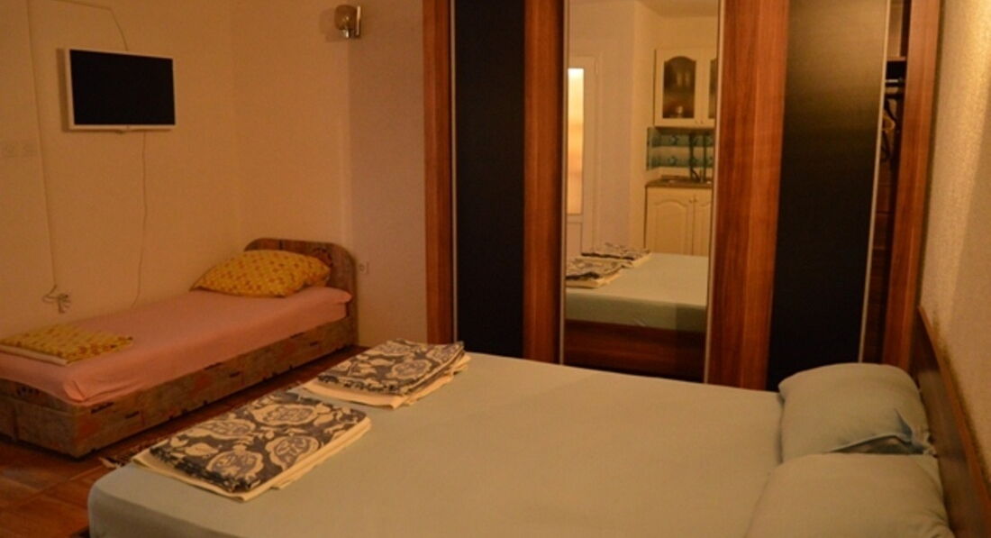 •1 тримісний апартамент (25 м2) спальня з французьким та односпальним ліжками, вітальня з міні-кухнею. Максимально допустиме розміщення – 3 особи.
